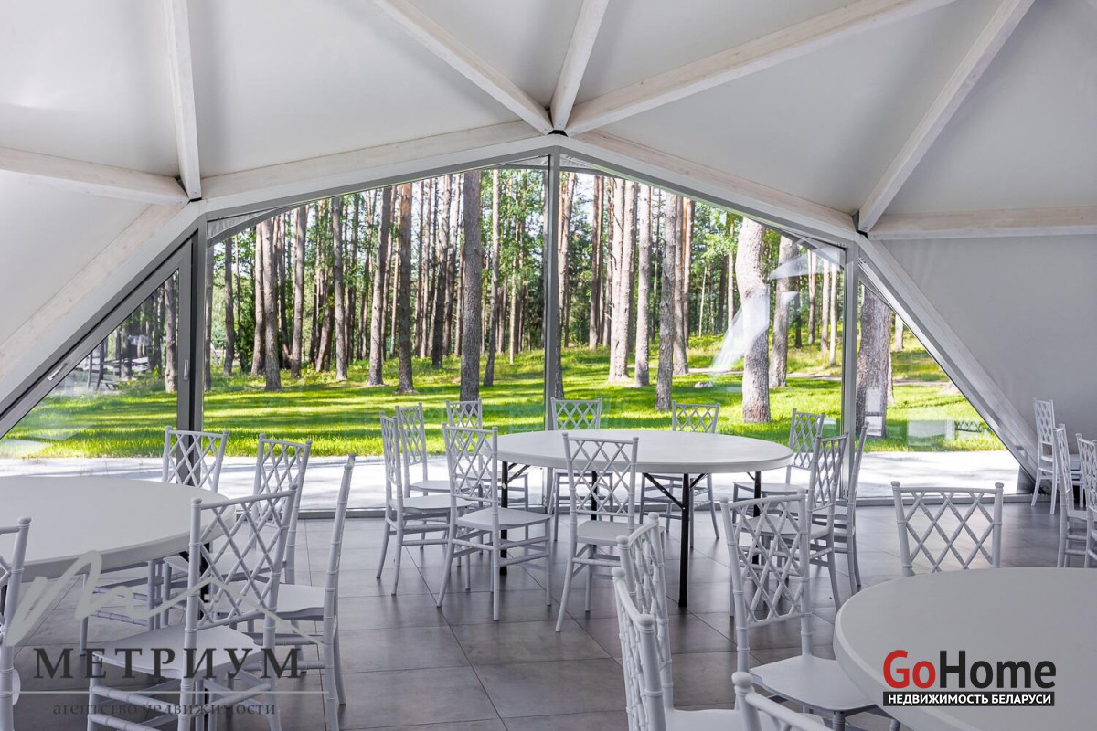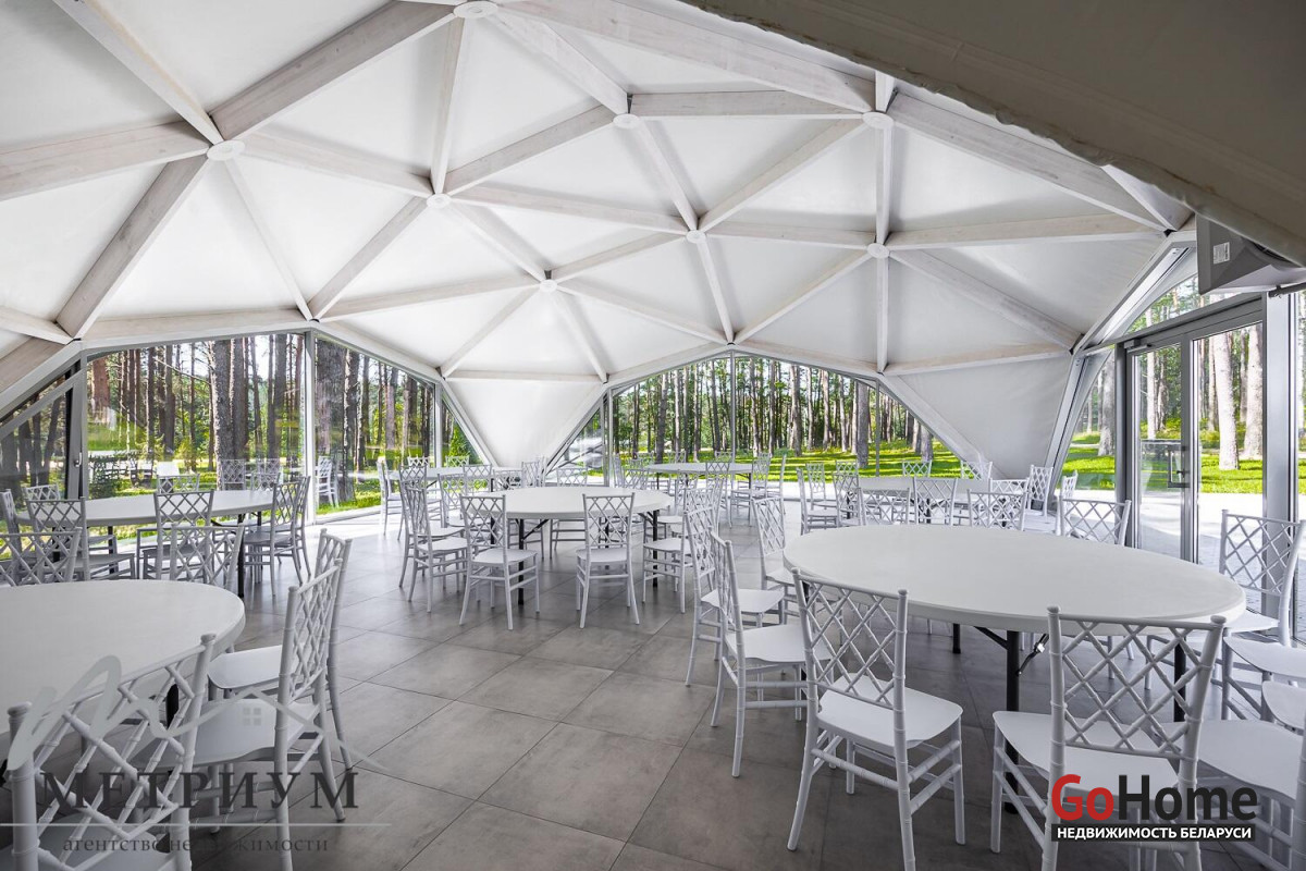 В загородном комплексе есть возможность провести масштабное мероприятие благодаря большому, современному и уютному шатру. Он вмещает в себя до 200 гостей и подходит для любого мероприятия: свадьбы, корпоративы, юбилеи, нового года и другого выездного банкета, поскольку в нём установлена большая профессиональная кухня. И что важно- в нём комфортно в любую погоду, так как помещение отапливается водяными полами. Большие панорамные окна из алюминия с завораживающими пейзажами никого не оставит равнодушными. В наличии посуда на 200 гостей, 3 кондиционера, огромный экран, профессиональное музыкальное оборудование. Также шатёр оборудован санузлами.