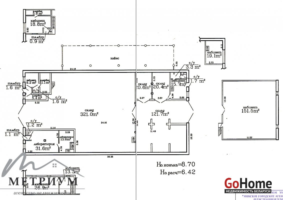 Капитальное строение общей площадью 817 м2 с прилегающей территорией площадью 2532 м2 из них 144 м2 под навесом. Здание частично отапливается, полы бетонные.