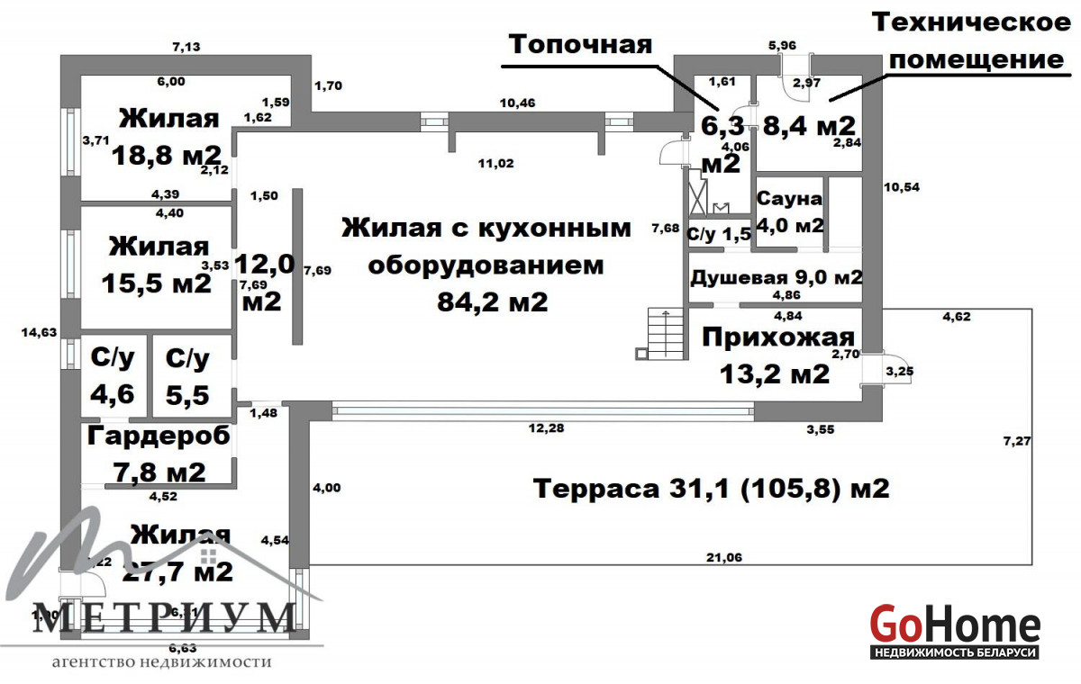 - Все коммуникации введены в дом: электричество (15кВт), газ, вода, канализация.