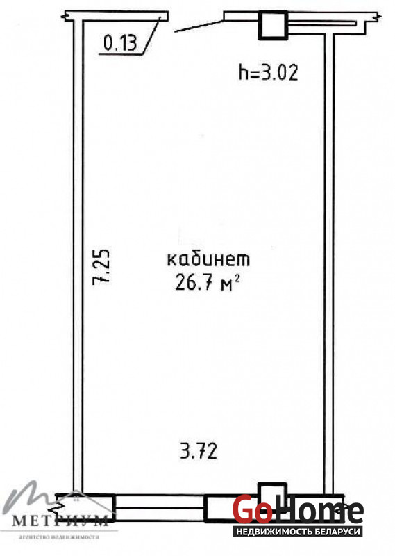 Расположен на 4-ем этаже 4-х этажного здания. Общая площадь 26,7м.кв., высота потолка 3,04 м. В офисном помещении выполнен ремонт из качественных строительных материалов.