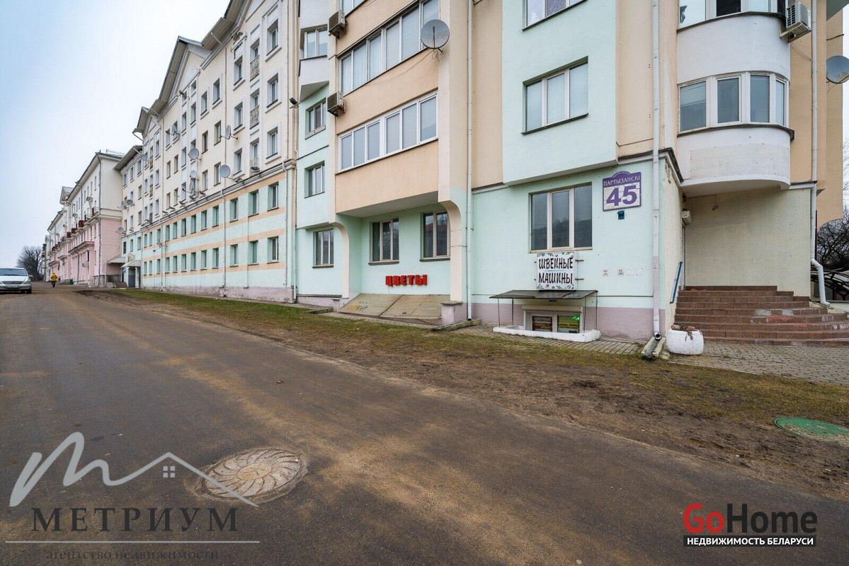Торговое помещение 177,5 кв.м. располагается на первом этаже жилого дома по адресу: Партизанский пр-т, 45. Строение расположено на первой линии домов по Партизанскому проспекту.