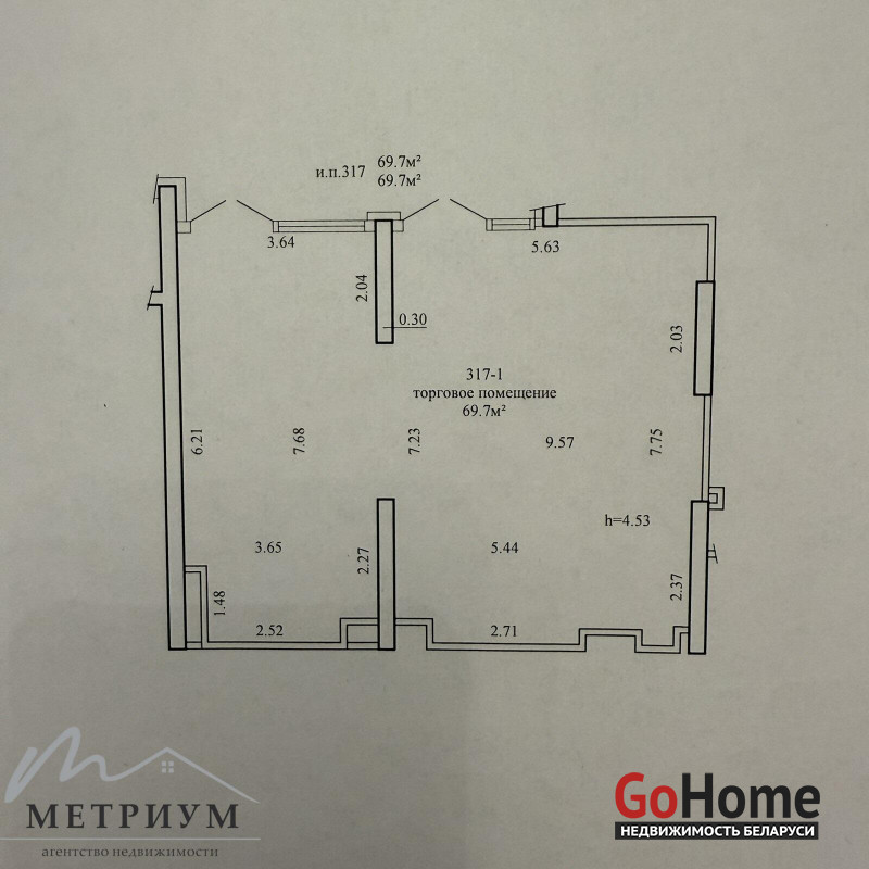 - Потолки: 4,53 метра — что позволяет создать уютное и просторное пространство для ваших клиентов и сотрудников.