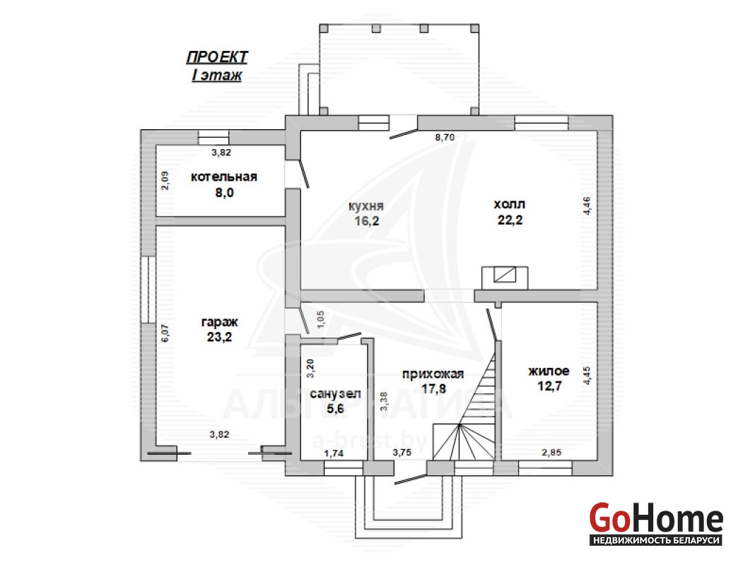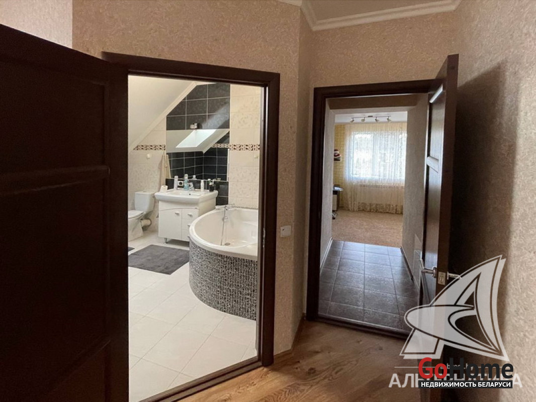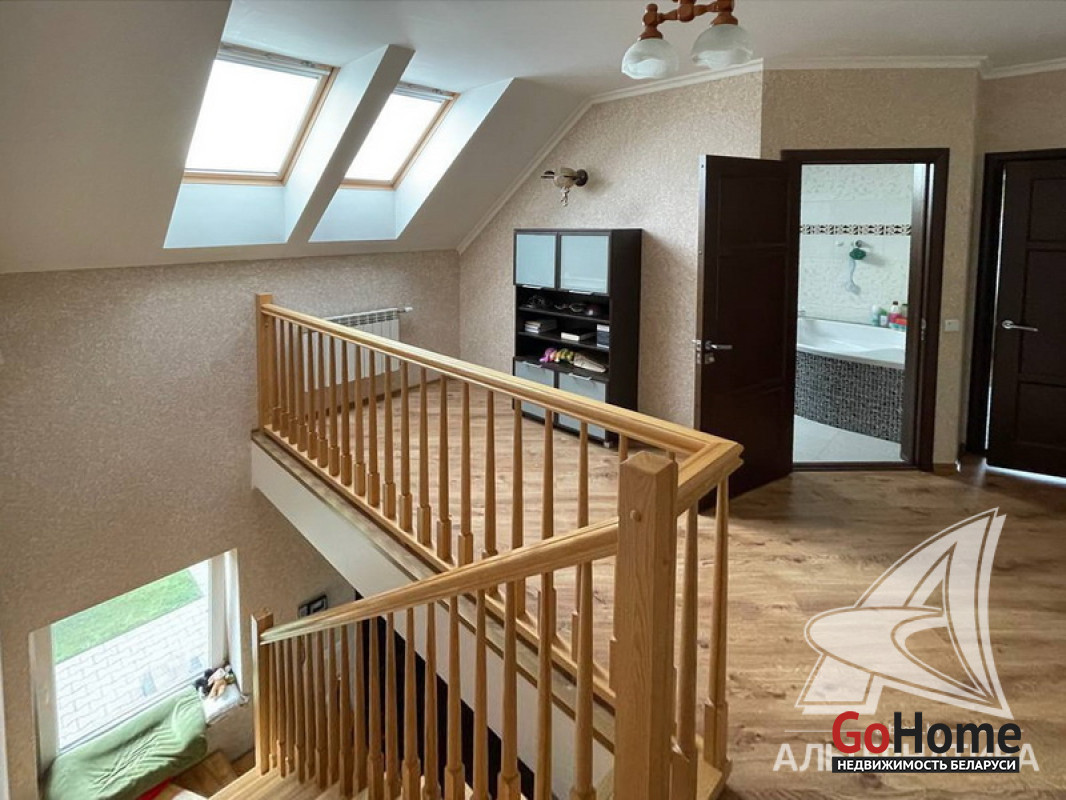 Жилой дом в Брестском р-не. 1 этаж, мансарда. Общ.СНБ - 217,5 кв.м, общ.- 190,5 кв.м, жил.- 96,1 кв.м, кух.- 16,2 кв.м. 5 комнат, высота потолка - 3,00 м.