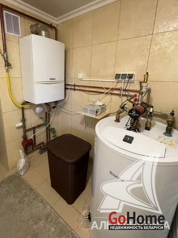 Коммуникации: отопление - газовый котел, газ - централизованный (в доме), водоснабжение - централизованный водопровод, электричество - централизованное, канализация - автономная.