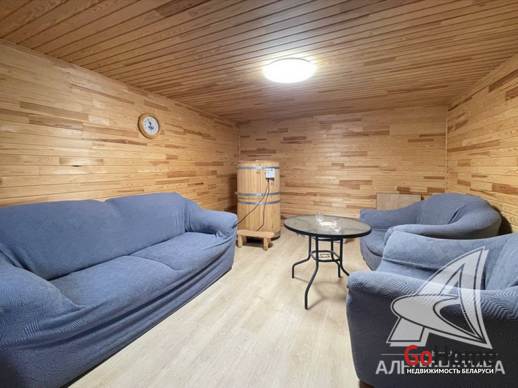 Жилой дом в Брестском р-не. 2015 г.п. 2 этажа, цокольный этаж. Общ.СНБ - 247,8 кв.м, общ.- 153,3 кв.м, жил.- 96,5 кв.м, кух.- 16,9 кв.м. 4 комнаты, высота потолка - 2,90 м.