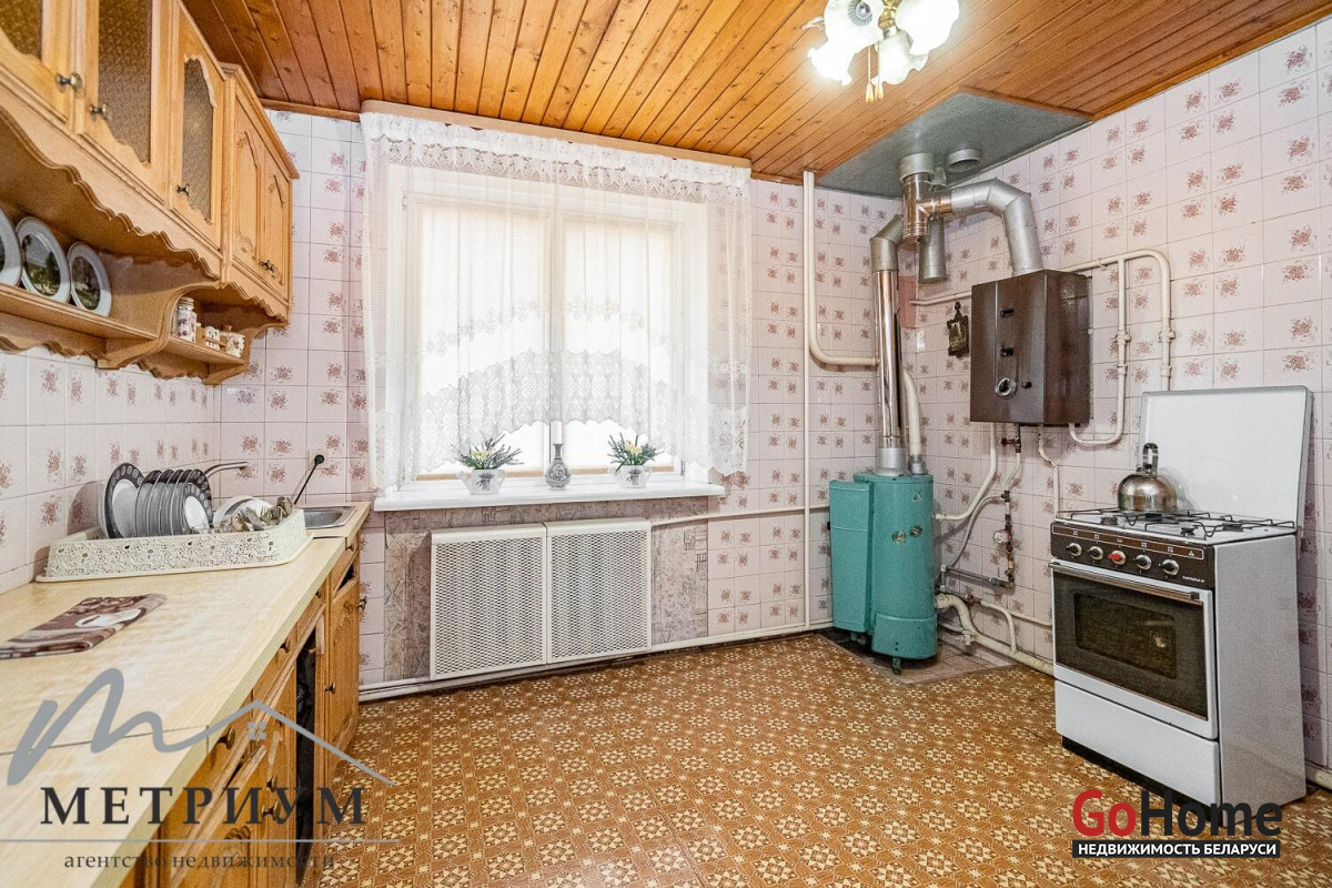 Кухня – светлая, просторная и функциональная, оборудована гарнитуром, отдельно стоящей газовой плитой. Большое окно обеспечивает хорошее естественное освещение.