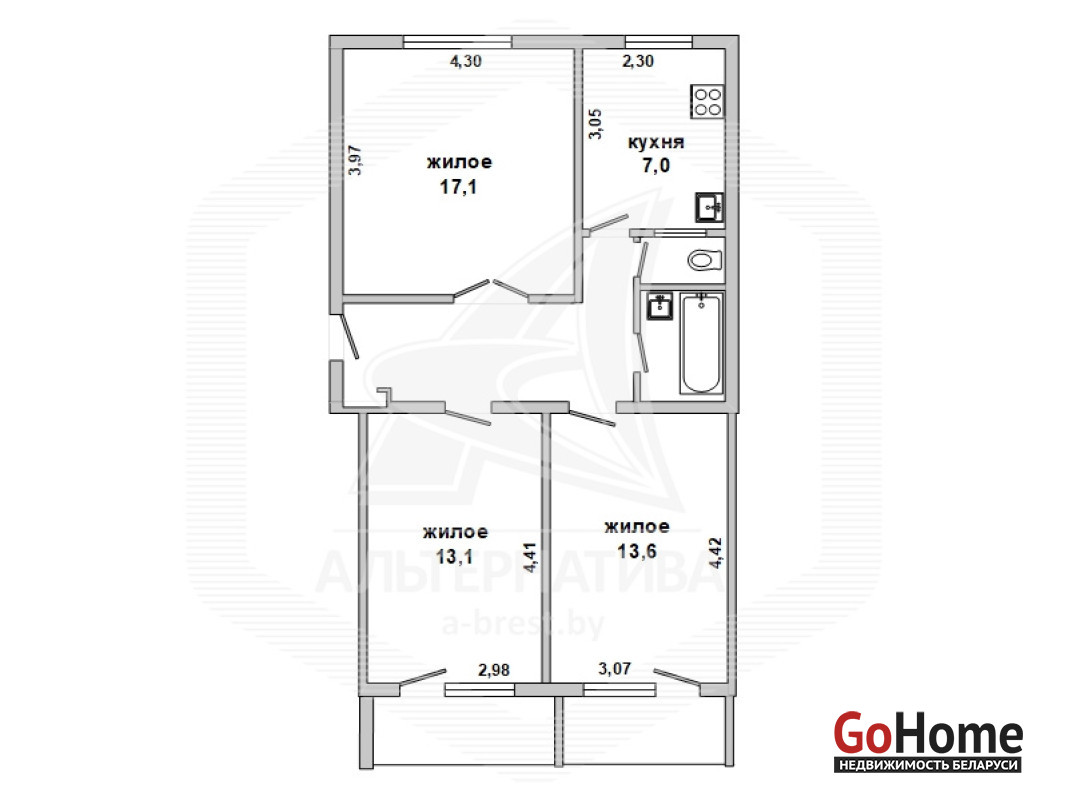 3-комнатная квартира, г. Брест, ул. Скрипникова, 1973 г.п., 5 / 5 кирпич, 66,3 / 63,3 / 43,8 / 7,0, санузел раздельный, две лоджии застеклены, подвал, стеклопакеты, межкомнатные двери - массив, входная дверь двойная деревянная, потолки - снежка и натяжные (2,60 м), полы - ламинат и линолеум, в санузле современная плитка, заменена сантехника, заменен полотенцесушитель, заменены сантехнические трубы, ванна, газовая колонка в кухне, проведена новая электропроводка, установлены новые радиаторы, установлены фильтры очистки воды, новый электросчетчик, телефон, домофон. Квартира с хорошим ремонтом. Чистый подъезд. Капитальный ремонт дома 2014 г. Произведен ремонт крыши. Утепление дома шубой. Лот - 250354