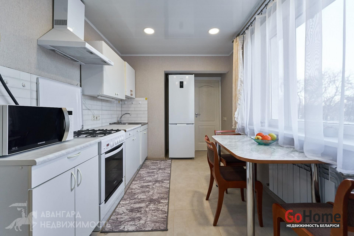 Отличная инфраструктура микрорайона. Рядом есть всё необходимое для комфортной и удобной жизни: детские сады, школы, детская поликлиника, аптеки, банки, супермаркеты и магазины, фитнес-центр с бассейном и сауной «Адреналин»- всё в шаговой доступности. Около дома находятся места для отдыха всей семьи: парки отдыха, зоопарк, дельфинарий. В шаговой доступности набережная реки Свислочь с городской велодорожкой. Отличное транспортное сообщение: рядом с домом остановка общественного транспорта. Быстро и удобно добираться в любую точку города, как на автомобиле, так и на общественном транспорте. В 20 минутах пешком ст.м. Партизанская и Автозаводская.
