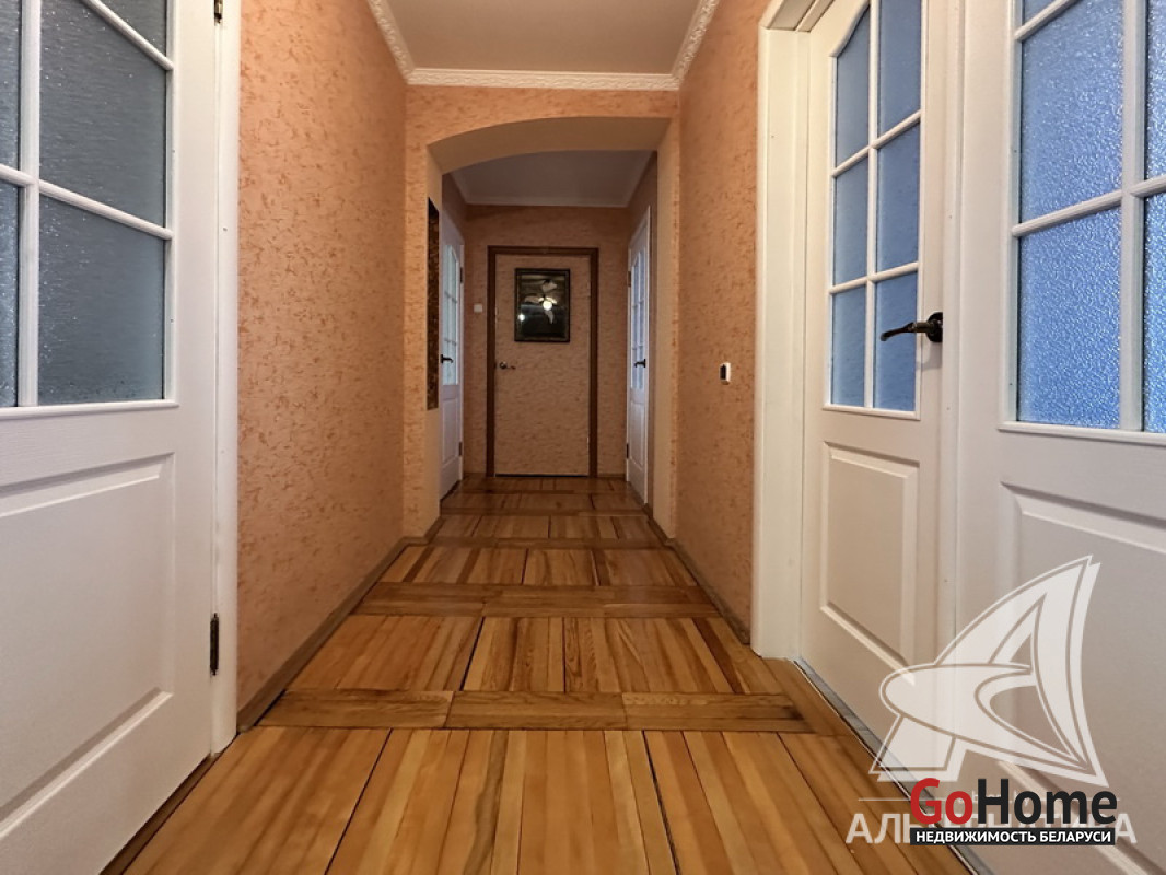 4-комнатная квартира, г. Брест, ул. Орловская, 1982 г.п., 1 / 9 панель, 88,4 / 81,2 / 52,7 / 9,43, санузел раздельный, три лоджии застеклены, деревянные межкомнатные двери, входная дверь двойная деревянная, потолки - снежка, полы - паркет, ламинат (в комнатах) и плитка (в кухне), стены оклеены обоями, современная плитка в туалете, телефон, домофон. Кухонный гарнитур, варочная поверхность, духовой шкаф, вытяжка. Квартира с хорошим ремонтом. Чистый подъезд. На этаже оборудована кладовая, сушилка. Один пассажирский лифт. Во дворе игровая детская площадка, парковка для автомобилей. Дом расположен в глубине двора. Лот - 250367