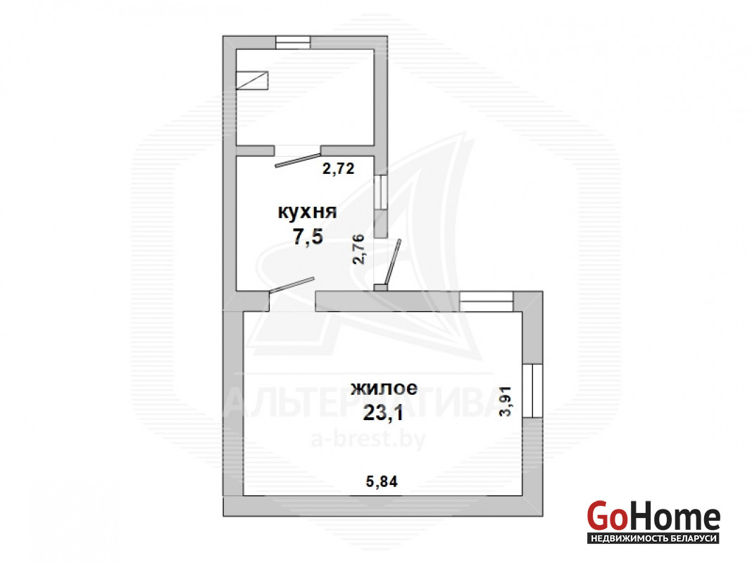 1-комнатная квартира, г. Брест, ул. Писателя Смирнова, 1976 г.п., 2 / 5 кирпич, 21,0 / 21,0 / 11,2 / 5,4, санузел совмещенный, деревянный стеклопакеты, деревянные межкомнатные двери, потолки (2,51 м) - побелка, полы - кр…