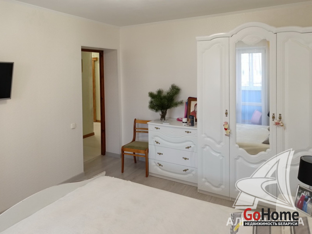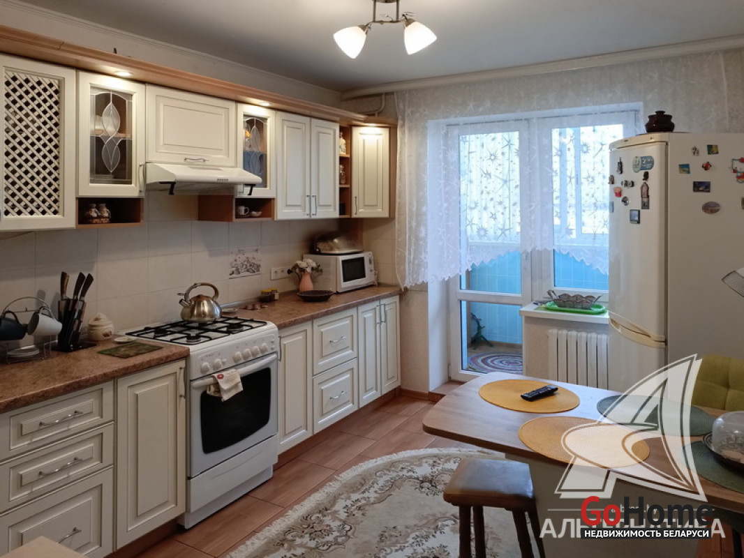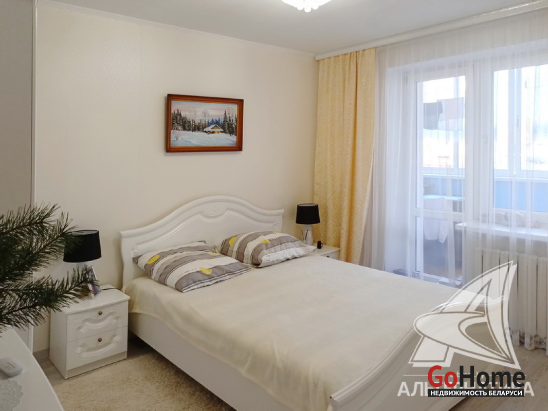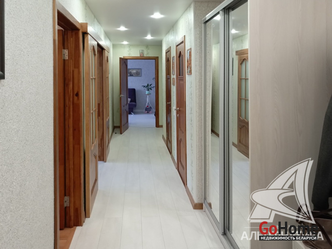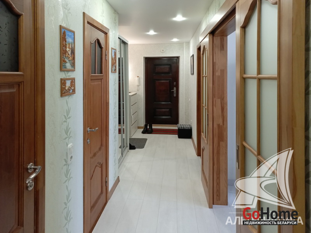 3-комнатная квартира, г. Брест, ул. Колесника, 2010 г.п., 1 / 5 кирпич, 73,2 / 69,5 / 40,8 / 10,9, санузел раздельный, две лоджии застеклены, подвал, двухкамерные стеклопакеты, межкомнатные двери - массив, входная дверь металлическая, потолки - снежка, подвесные из гипсокартона (в комнате, в спальне) и натяжной (в коридоре, во второй спальне) - 2,54 м., полы - ламинат и плитка (в кухне) - положены на стяжку, стены оклеены обоями, в санузле современная плитка, телефон, домофон. Кухонный гарнитур. Высокий цоколь. Во дворе игровая детская площадка. Лот - 250378