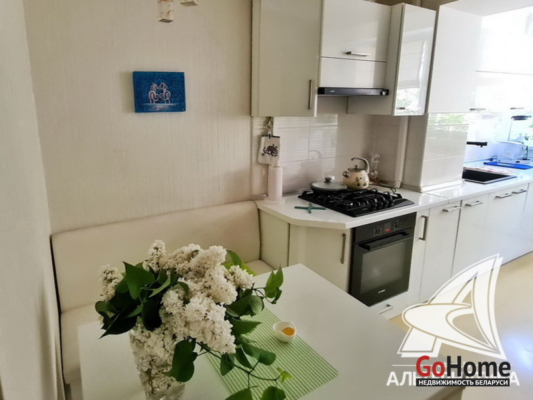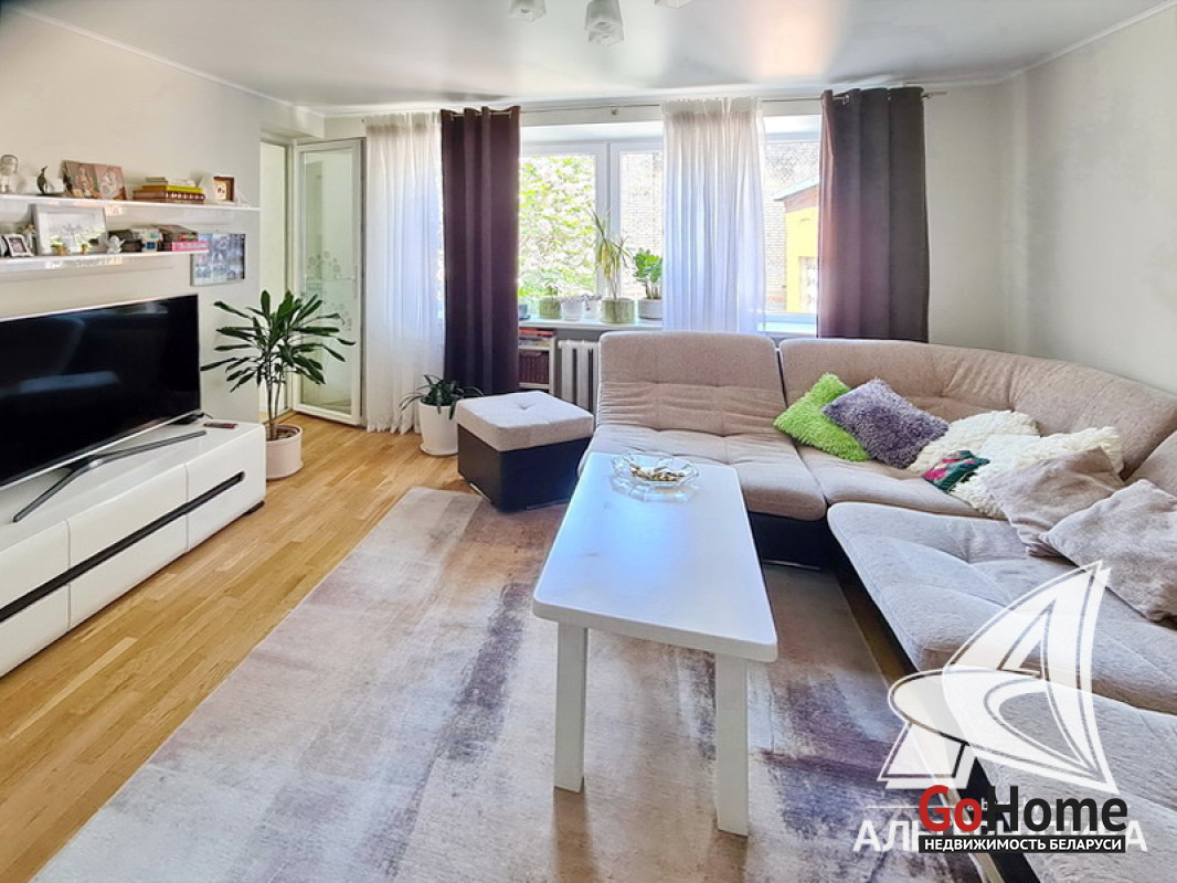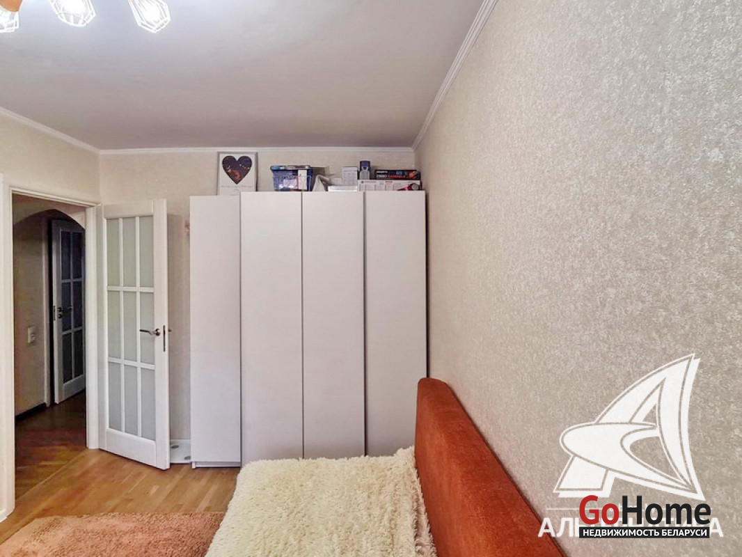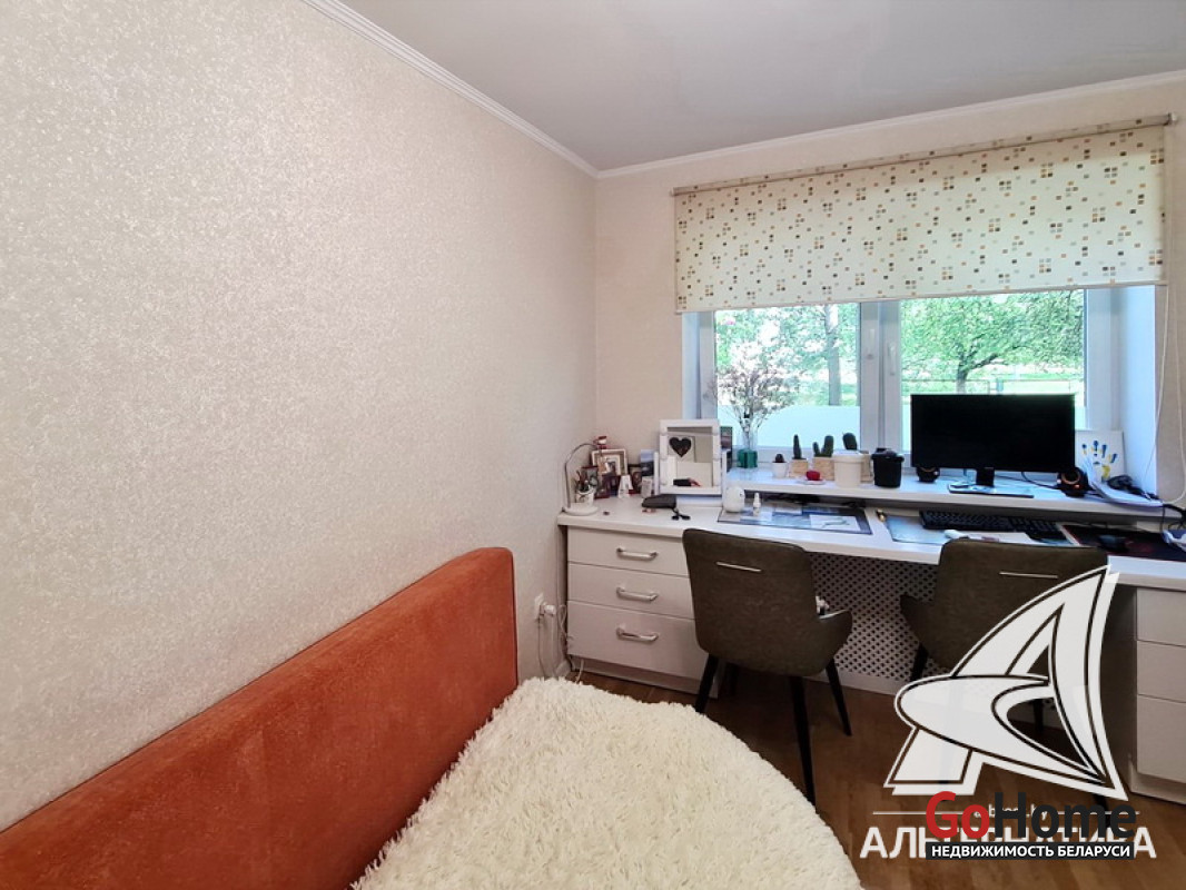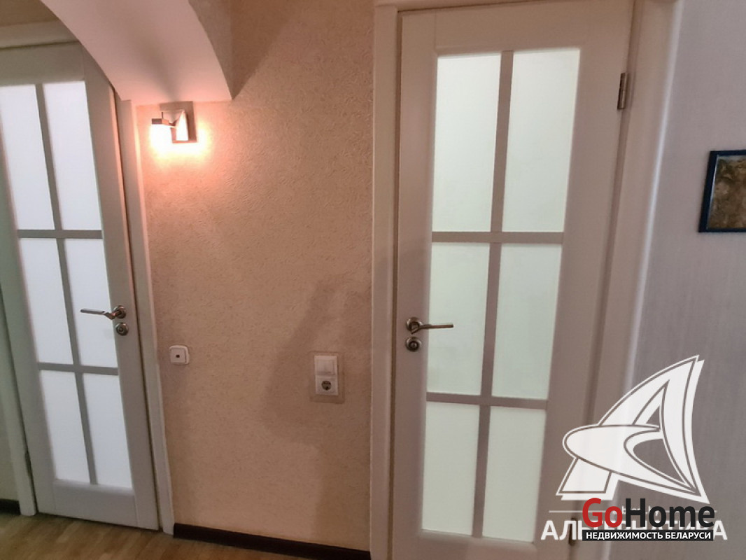 3-комнатная квартира, г. Брест, ул. Янки Купалы, 1981 г.п., 1 / 5 кирпич, 61,1 / 58,6 / 36,6 / 8,3, санузел раздельный, лоджия застеклена, подвал, стеклопакеты, межкомнатные двери - массив, входная дверь металлическая, потолки (2,5 м) - снежка (в спальнях, в кухне) и натяжные (сатин, в зале), полы (положены на стяжку) - паркет и наливной пол, стены оклеены обоями (в спальнях, в кухне) и декоративная окраска (в зале), в санузле современная плитка, заменена сантехника, заменен полотенцесушитель, душевая кабина, новый электросчетчик, телефон, домофон. Кухонный гарнитур, газовая варочная поверхность, электрический духовой шкаф, вытяжка, посудомоечная машина, два встроенных шкафа-купе, встроенный письменный стол (в детской). Квартира с хорошим ремонтом. Квартира расположена на две стороны. Все окна выходят во двор. Чистый подъезд. Во дворе игровая детская площадка, парковка для автомобилей. Лот - 221407