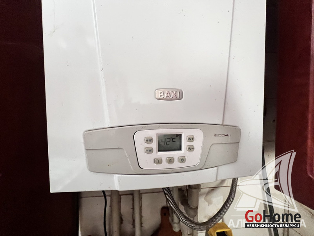 Коммуникации: отопление - газовый котел, газ - централизованный (в доме), водоснабжение - централизованный водопровод, электричество - централизованное, канализация - централизованная.
