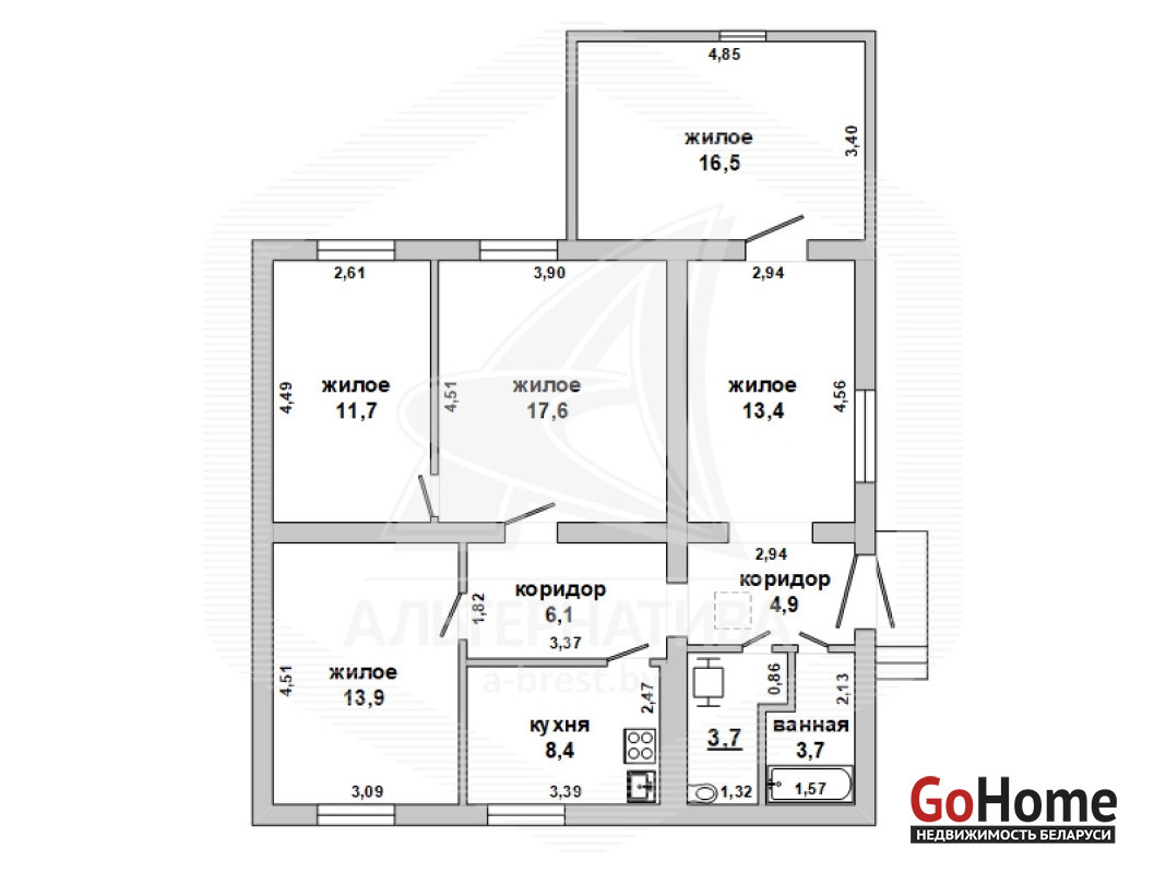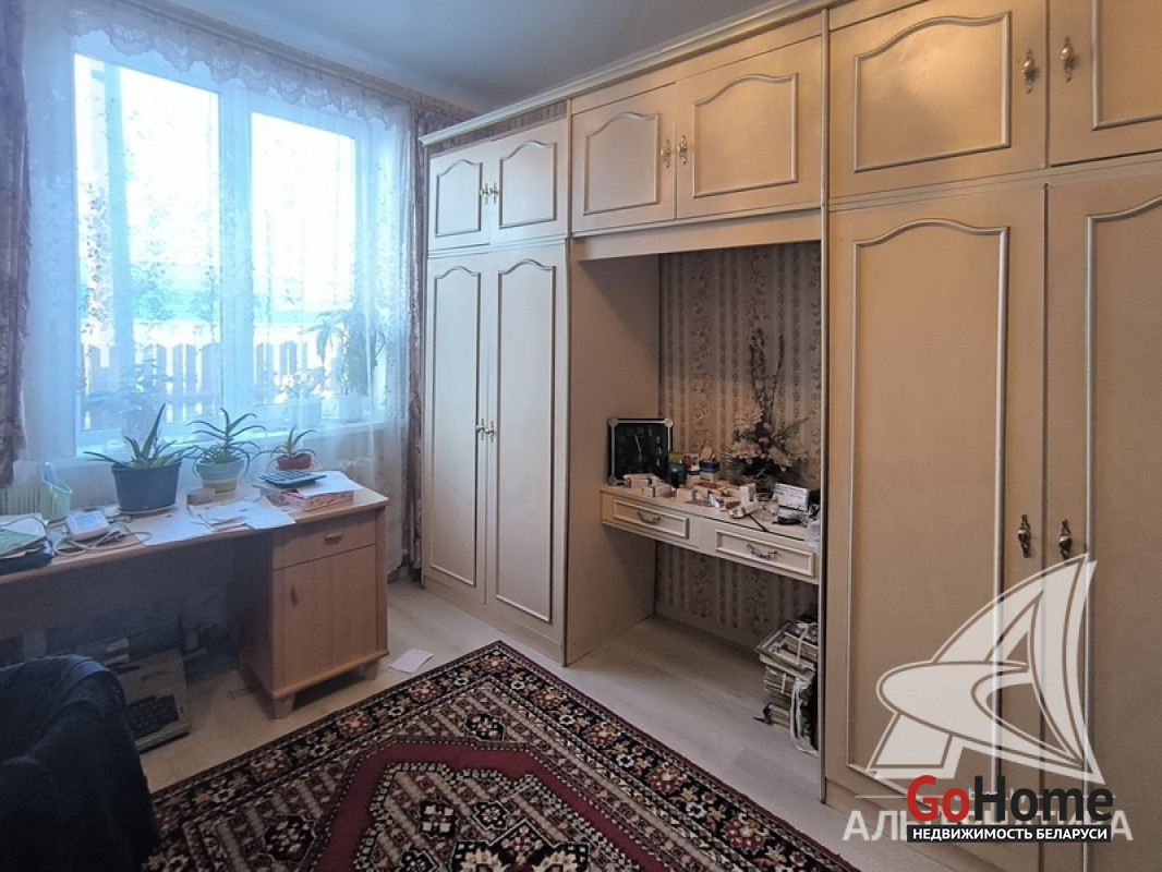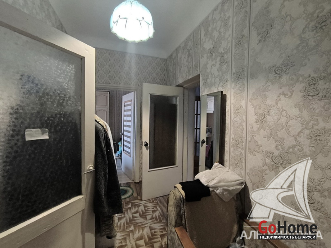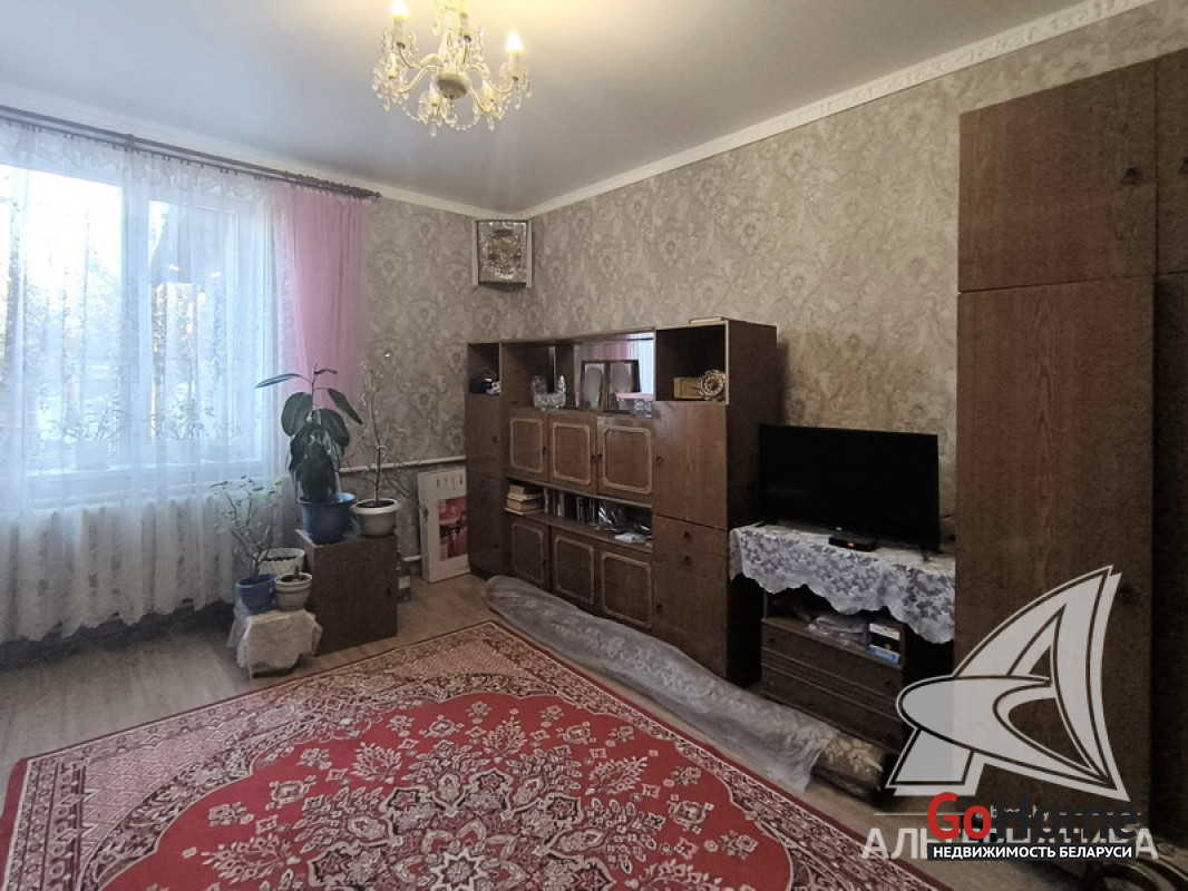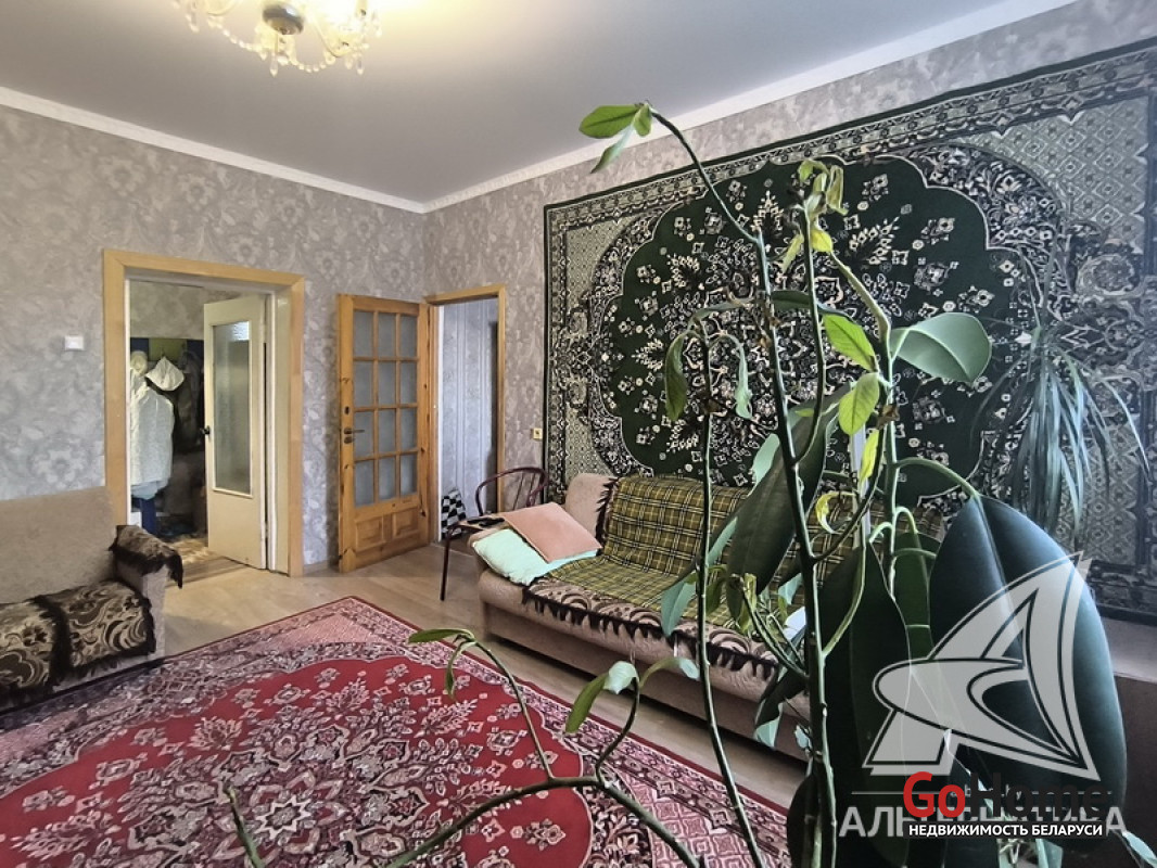 Квартира в блокированном жилом доме в г.Бресте. 1956 г.п. 1 этаж. Общ.СНБ - 99,9 кв.м, общ.- 99,9 кв.м, жил.- 71,3 кв.м, кух.- 8,4 кв.м. 5 комнат, высота потолка - 3,00 м.