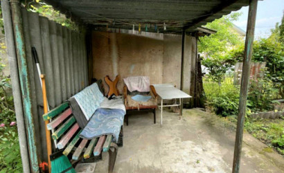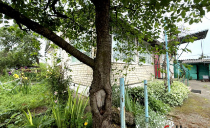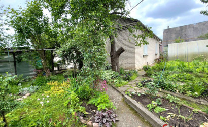 Участок 12,7 соток, прямоугольной формы, ухоженный. На участке растут декоративные и ягодные кустарники, плодовые деревья. Имеются: хозяйственные постройки, теплица, беседка и гостевой дом с санузлом и гаражом под всем домом. По периметру установлен металлический забор. Всё сделано аккуратно и со вкусом.