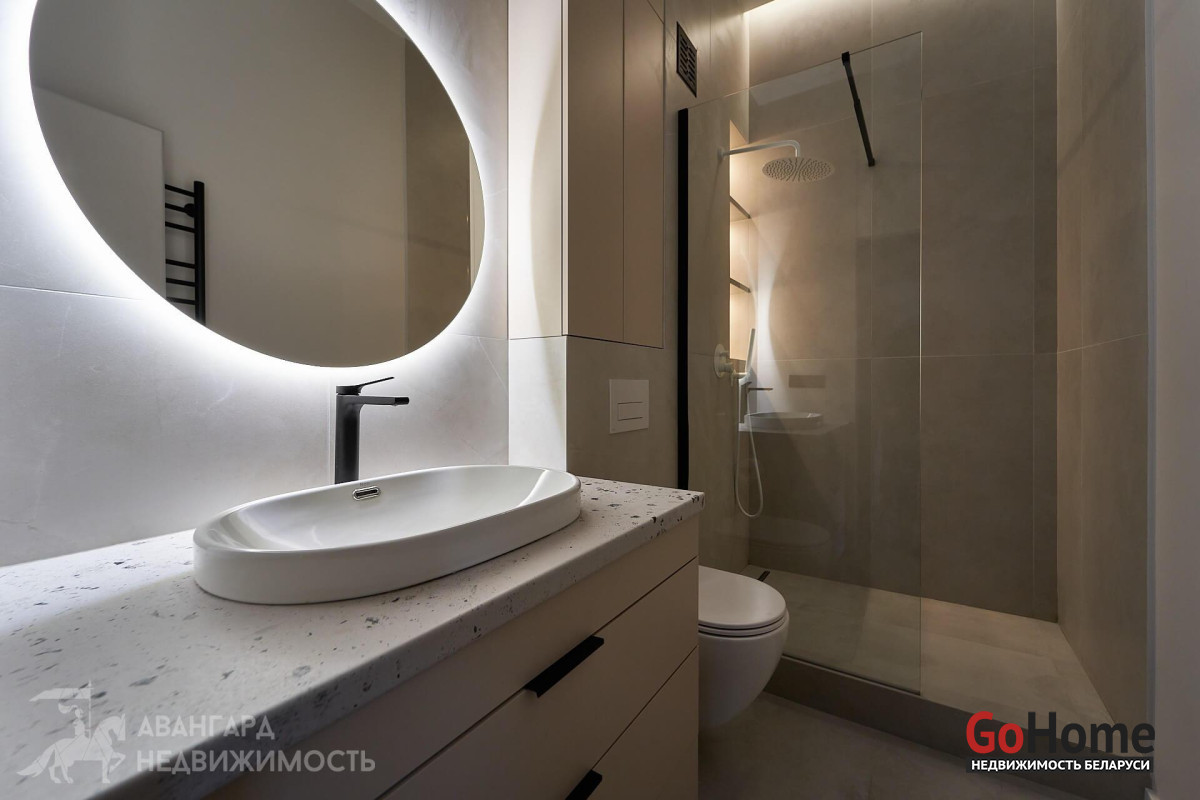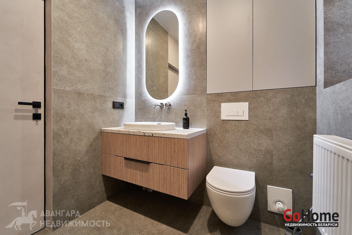 Все санузлы укомплектованы всем необходимым сантехническим оборудованием: инсталляция, душевая кабина, умывальник, полотенцесушитель, смесители, мебель. Установлена система от проточек воды.