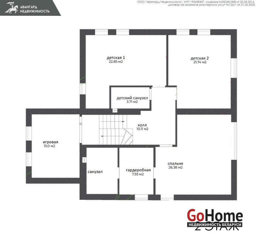 Между первым и вторым этажом - отдельная комната выделена под игровую, либо можно оборудовать любое помещение по своему усмотрению.