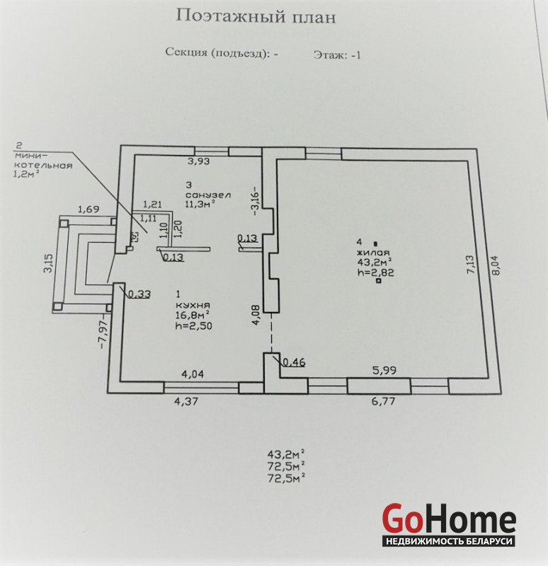Общая площадь дома составляет 72,5 м², жилая – 43,2 м², кухня – 16,8 м². Реконструкция была проведена в 2024 году. На первом этаже расположены большая гостиная площадью 43 м², кухня и совмещенный санузел. Второй этаж без отделки, что дает возможность реализовать ваши дизайнерские идеи.