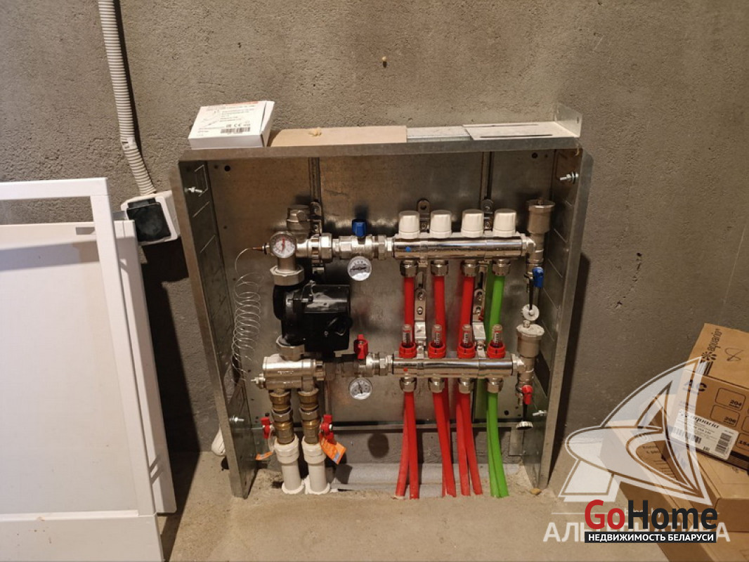 Коммуникации: отопление - газовый котел, газ - централизованный (в доме), водоснабжение - централизованный водопровод, электричество - централизованное, канализация - автономная и централизованная (по улице).