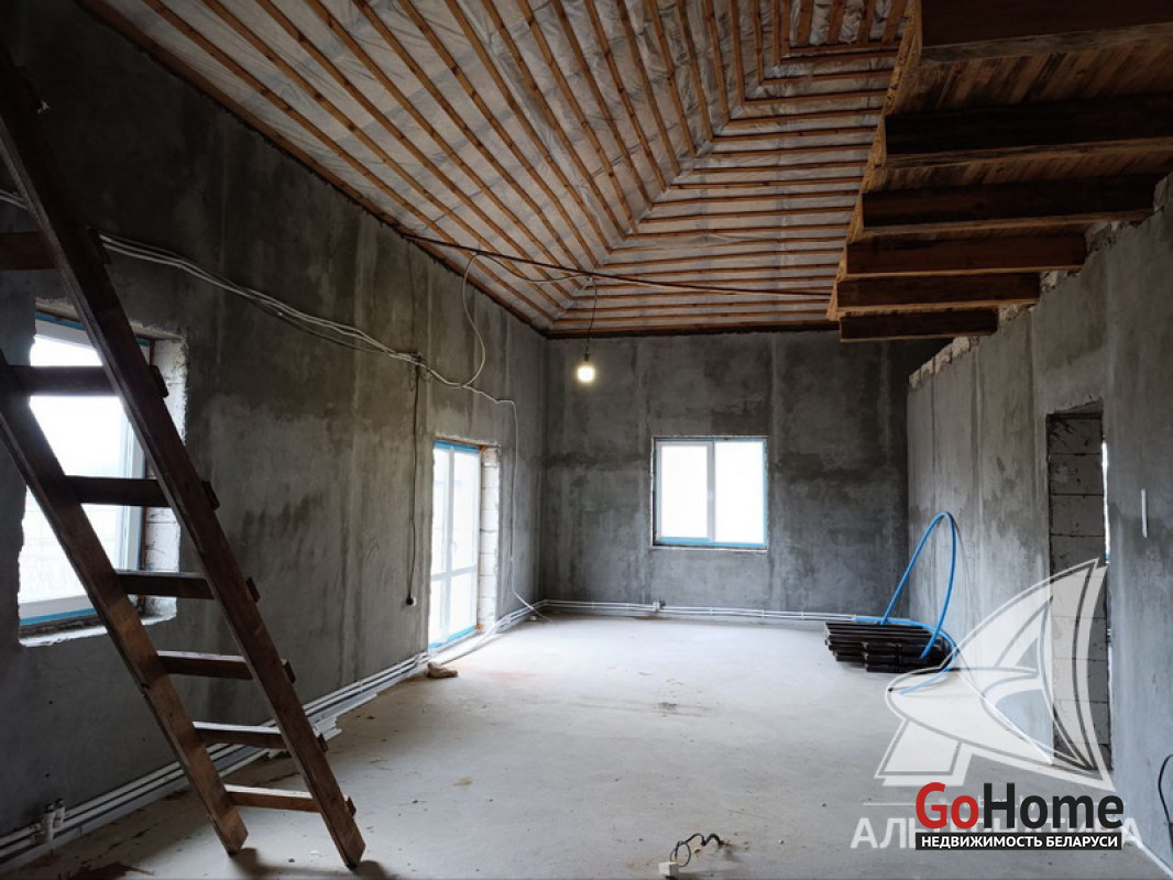 Дом под чистовую отделку в г.Бресте. 2019 г.п. 1 этаж. Общ.СНБ - 128,2 кв.м, общ.- 128,2 кв.м, жил.- 45,0 кв.м, кух.- 46,2 кв.м. 2 комнаты, высота потолка - 2,89 м.