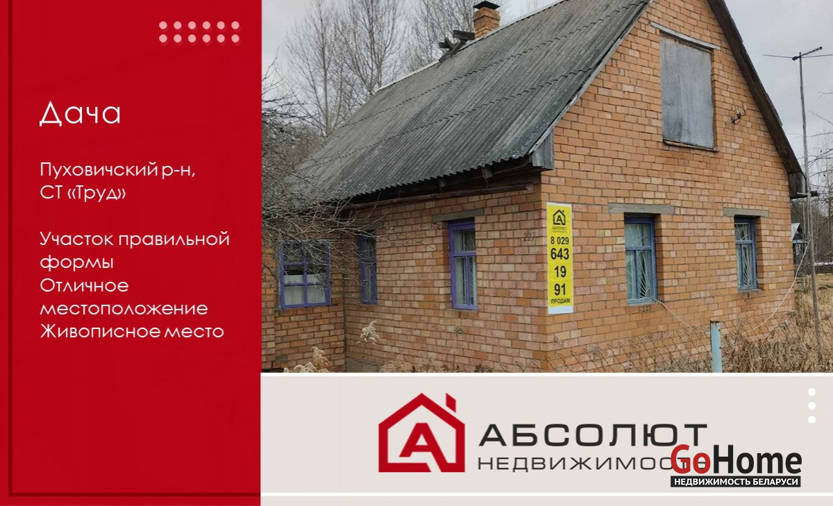 Минская обл.,Пуховичский р-н, Блужский с/с., СТ Труд МЗАЛ. Кирпичный дом 1991 года постройки.