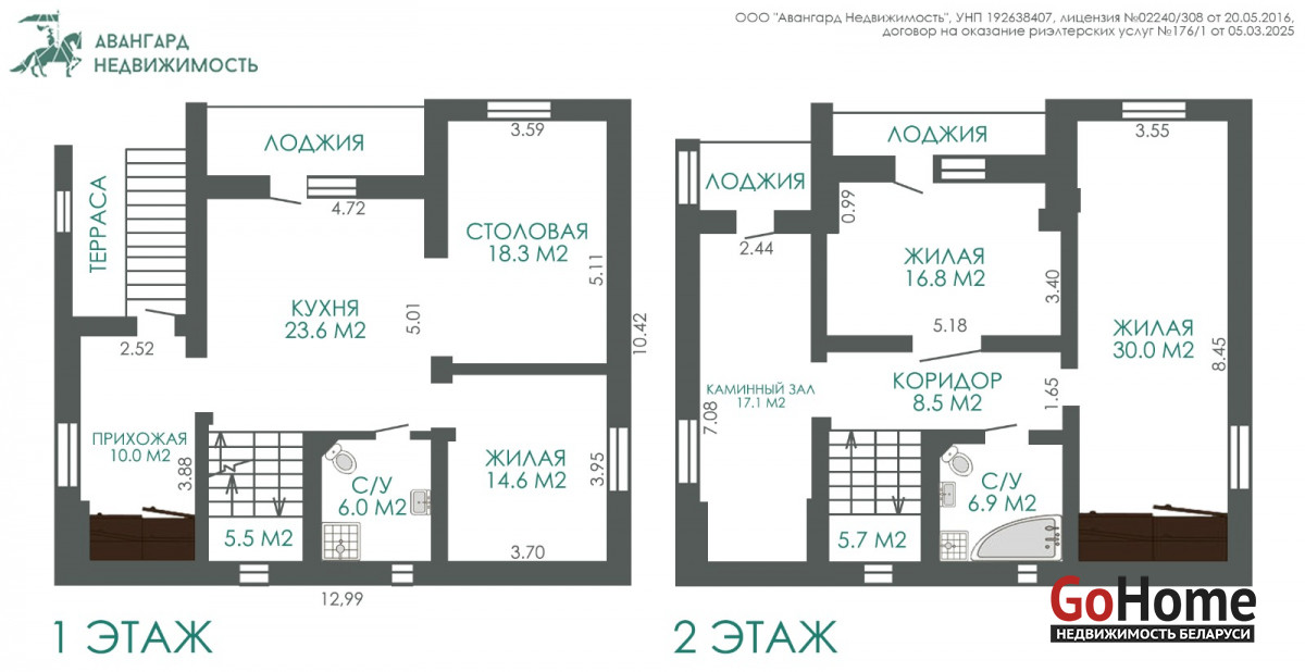 II уровень: жилая комната с выходом на лоджию, большая жилая комната 30 м2, каминный зал с выходом на лоджию, санузел с ванной и душевой кабиной.