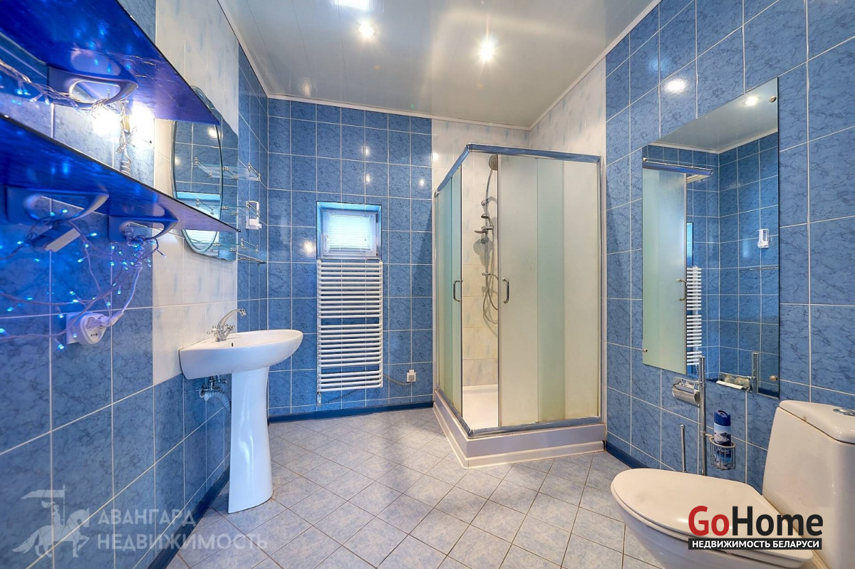Собственная скважина, канализация местная, организована ливневая система, отопление дом: двухконтурный газовый котел, радиаторы, все полы в зоне плитки с подогревом (второй и третий уровень – водяные, цокольный этаж – электро), баня: электрический котел, полы с подогревом, бойлер. Электричество 380 Вт. Проведено оптоволокно (Белтелеком).