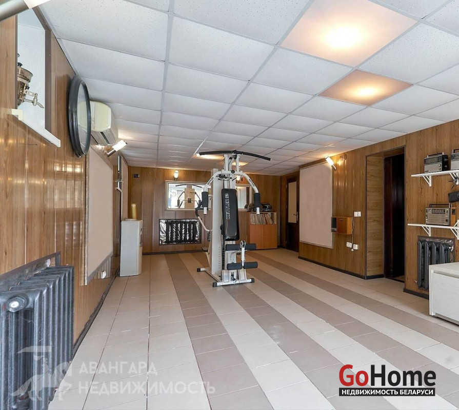 Цокольный этаж: гараж, оборудованный под тренажерный зал 34.6 м2, комната отдыха, санузел и топочная (отдельный вход с улицы).