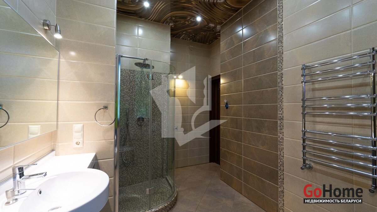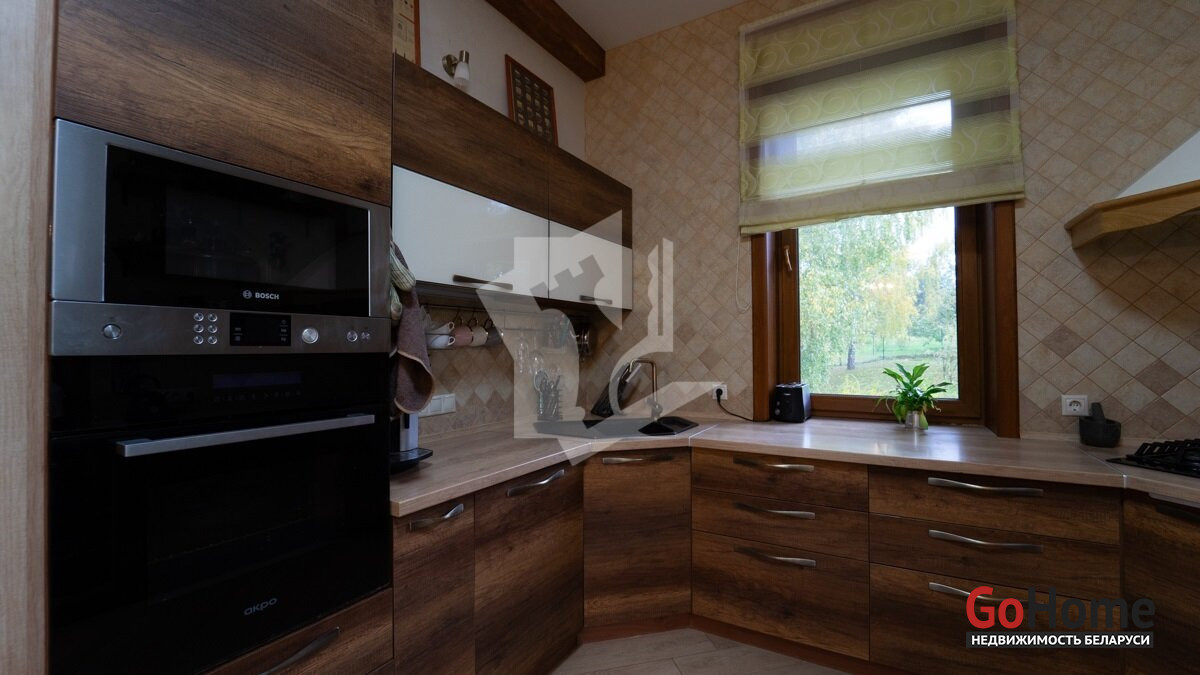 В доме несколько уровней каждый из которых функциональны. На первом этаже расположены функциональная кухня с современным оборудованием, просторная обеденная зона, где вы всей семьей будете собираться за ужином, уютная гостиная с отличным камином GLIVI у которого можно всегда согреться холодными вечерами. Так же на этаже есть кабинет (комната) и санузел. На втором этаже (мансардном) расположены 3 спальни, гардеробная и санузел. Из большей комнаты есть выход на балкон, где вы сможете любоваться прекрасным видом. Цокольный этаж представляет собой в основном техническую зону, где размещены котельная и гаражные помещения на 2 автомобиля. При этом есть просторная гардеробная и пространство, оборудованное под погреб. Так же имеется санузел. Всего санузлов в доме три. Во всех помещениях выполнен отличный ремонт материалы использовались Испанские, Итальянские Французские и других стран производителей. На полу постелена плитка, в комнатах шведский ламинат, на стенах декоративная штукатурка и обои, установлены качественные окна Schuco. В доме высокие потолки, что обеспечивает ощущение пространства.
