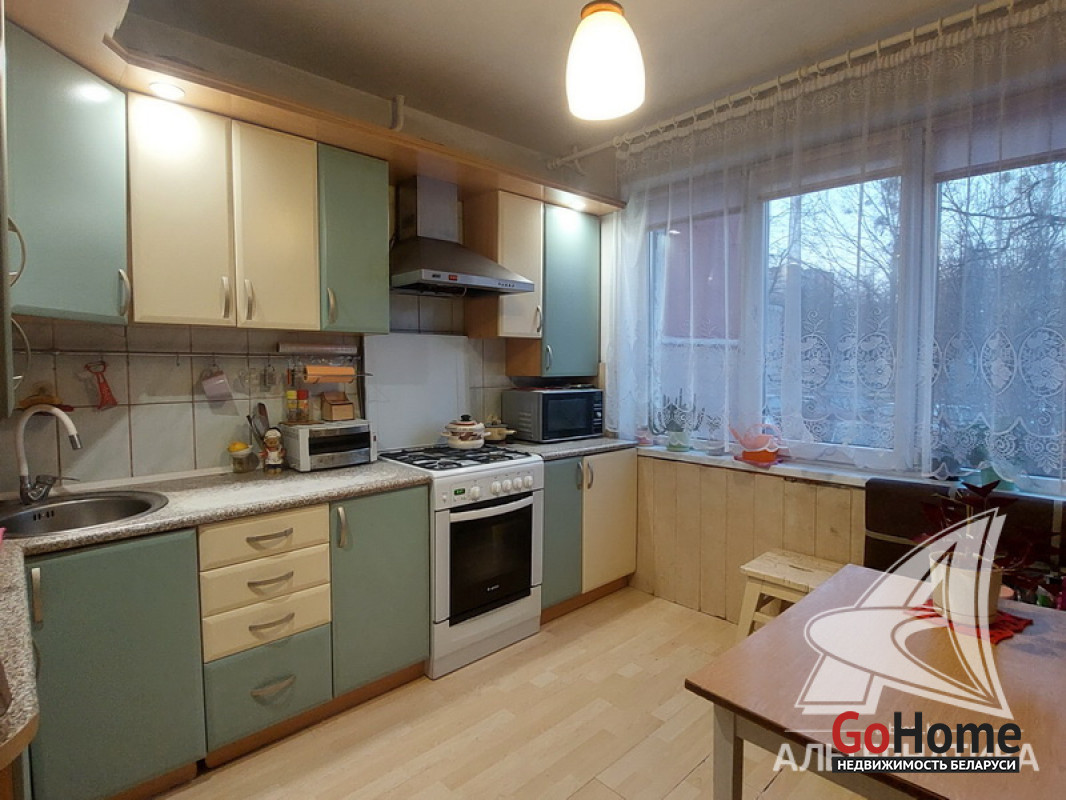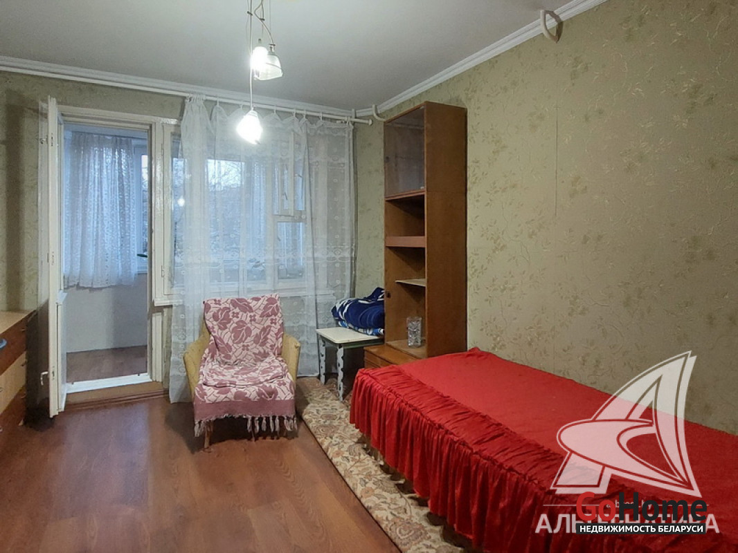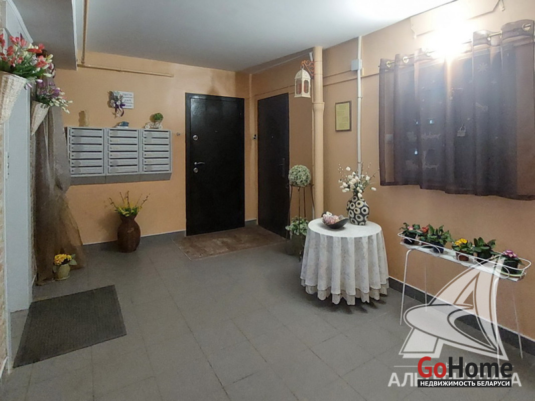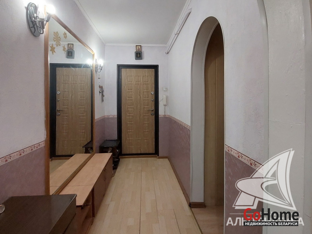 3-комнатная квартира, г. Брест, пр-т Партизанский, 1982 г.п., 1 / 9 панель, 73,3 / 68,5 / 40,4 / 9,25, санузел раздельный, две лоджии застеклены, стеклопакеты и деревянные окна из комнат на лоджию, потолки - снежка (2,50 м.), полы - ламинат (положен на ДСП, лаги, утеплитель и деревянный брус), стены оклеены обоями, в санузле современная плитка, заменена сантехника, акриловая ванна, новый электросчетчик, телефон, домофон. Кухонный гарнитур, вытяжка, газовая плита, шкаф в комнате. Квартира в жилом состоянии. Квартира расположена на две стороны. Чистый подъезд. Высокий цоколь. Один пассажирский лифт. Во дворе игровая детская площадка, парковка для автомобилей. Лот - 250494