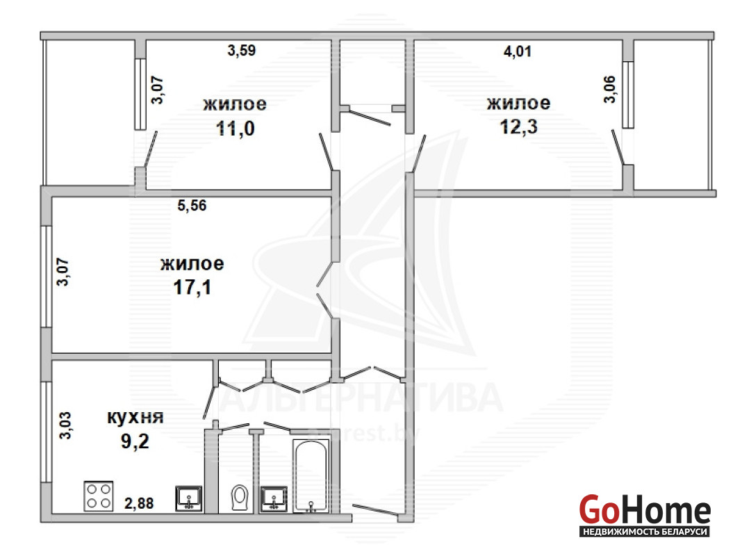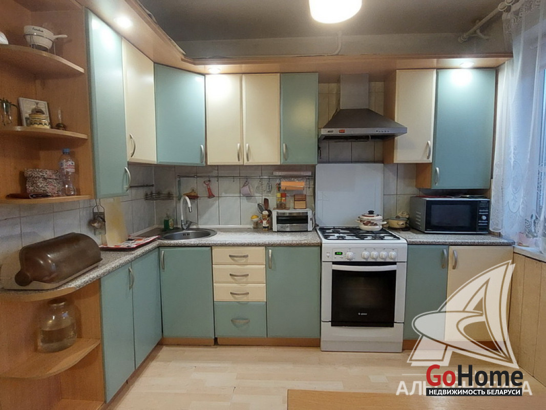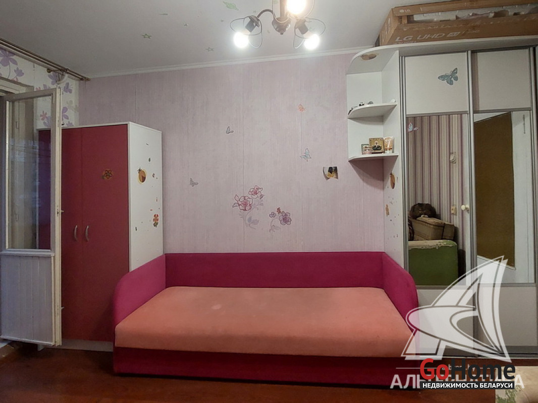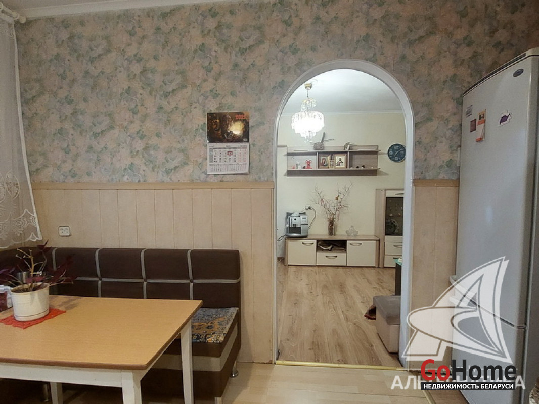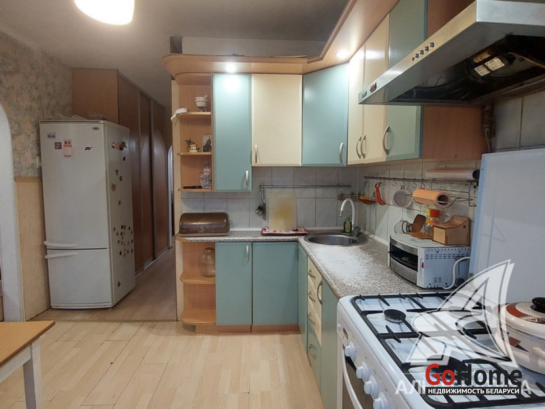 3-комнатная квартира, г. Брест, пр-т Партизанский, 1982 г.п., 1 / 9 панель, 73,3 / 68,5 / 40,4 / 9,25, санузел раздельный, две лоджии застеклены, стеклопакеты и деревянные окна из комнат на лоджию, потолки - снежка (2,50 м.), полы - ламинат (положен на ДСП, лаги, утеплитель и деревянный брус), стены оклеены обоями, в санузле современная плитка, заменена сантехника, акриловая ванна, новый электросчетчик, телефон, домофон. Кухонный гарнитур, вытяжка, газовая плита, шкаф в комнате. Квартира в жилом состоянии. Квартира расположена на две стороны. Чистый подъезд. Высокий цоколь. Один пассажирский лифт. Во дворе игровая детская площадка, парковка для автомобилей. Лот - 250494