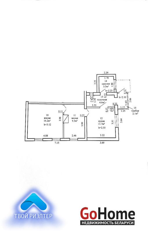 - кухня 11,7 кв.м.;