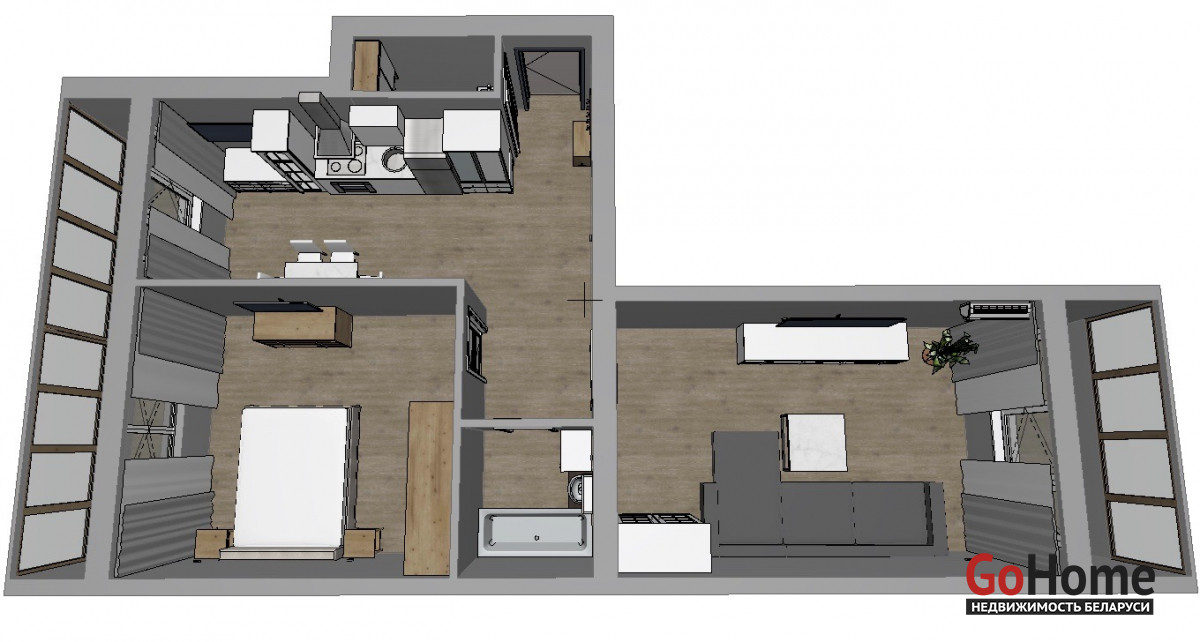 Продам 2-х комн. квартиру в центре города на набережной реки. Ремонт сделан в 2024-2025г. Все коммуникации, проводка новые. Полностью заменены на новые двери, потолки полы, сантехника. Мебели нет, еще никто не проживал. Для комфорта установлен кондиционер и бойлер для нагрева воды. В квартире после ремонта не проживал никто. Примерный план расстановки мебели на фото.