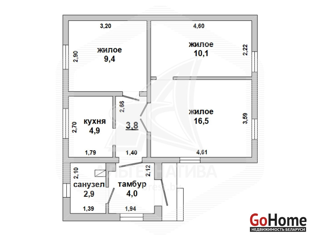 Дом под снос в г.Бресте. 1978 г.п. 1 этаж. Общ.СНБ - 51,6 кв.м, общ.- 51,6 кв.м, жил.- 36,0 кв.м, кух.- 4,9 кв.м. 3 комнаты, высота потолка - 2,64 м.