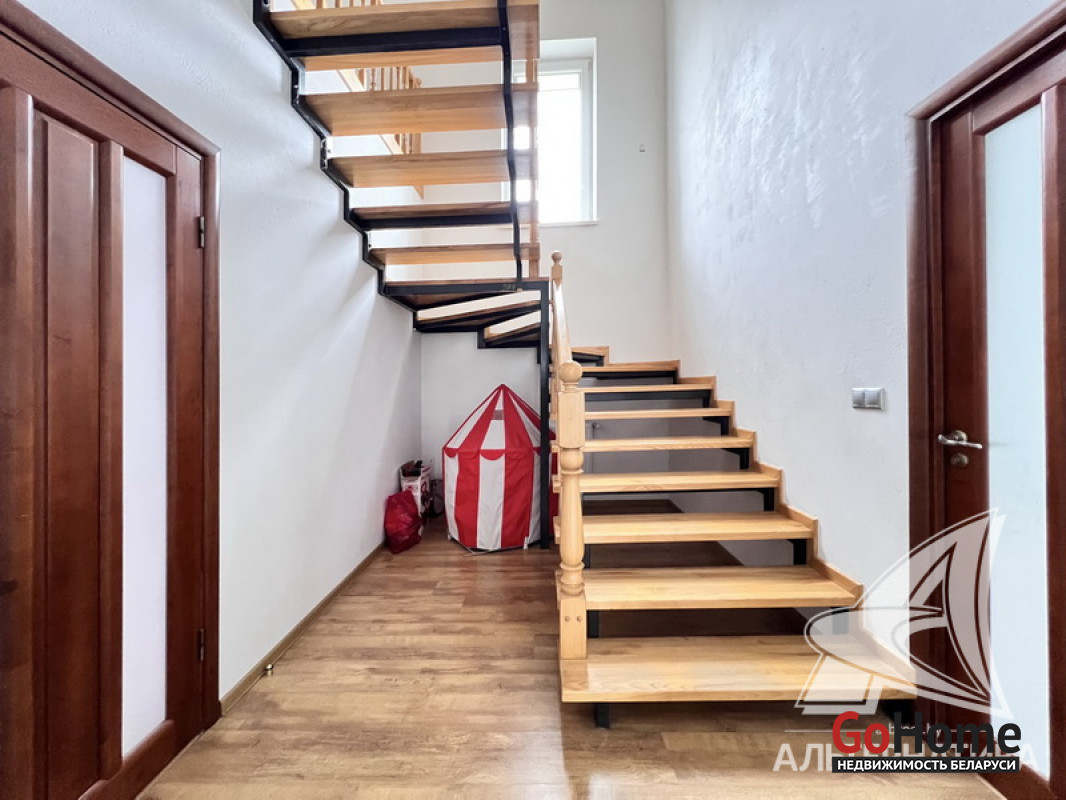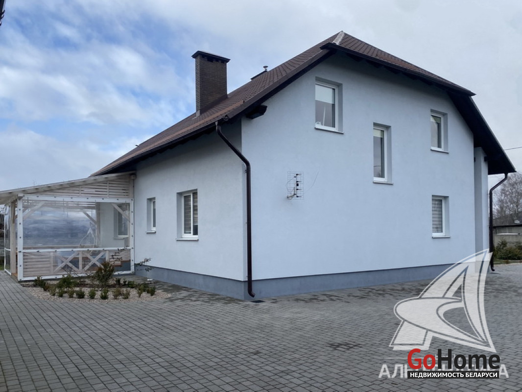 Жилой дом в Брестском р-не. 1 этаж, мансарда. Общ.СНБ - 216,4 кв.м, общ.- 216,4 кв.м, жил.- 118,7 кв.м, кух.- 16,6 кв.м. 6 комнат, высота потолка - 2,85 м.