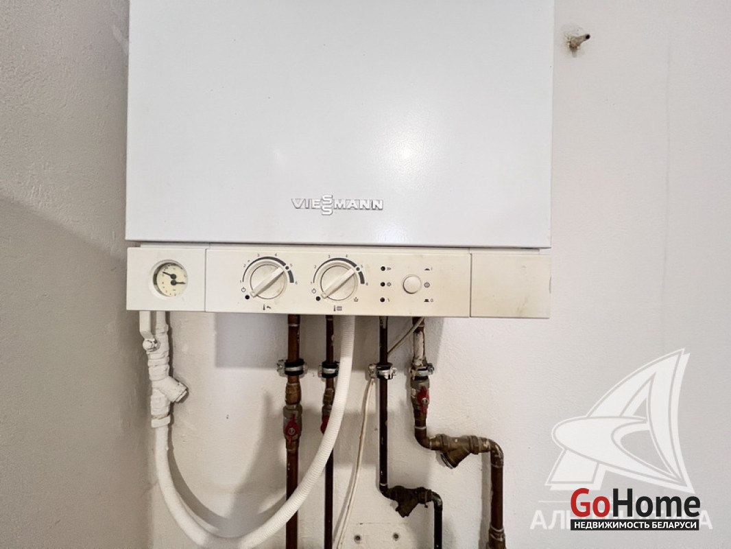 Коммуникации: отопление - газовый котел, газ - централизованный (в доме), водоснабжение - централизованный водопровод, электричество - централизованное, канализация - централизованная и автономная.