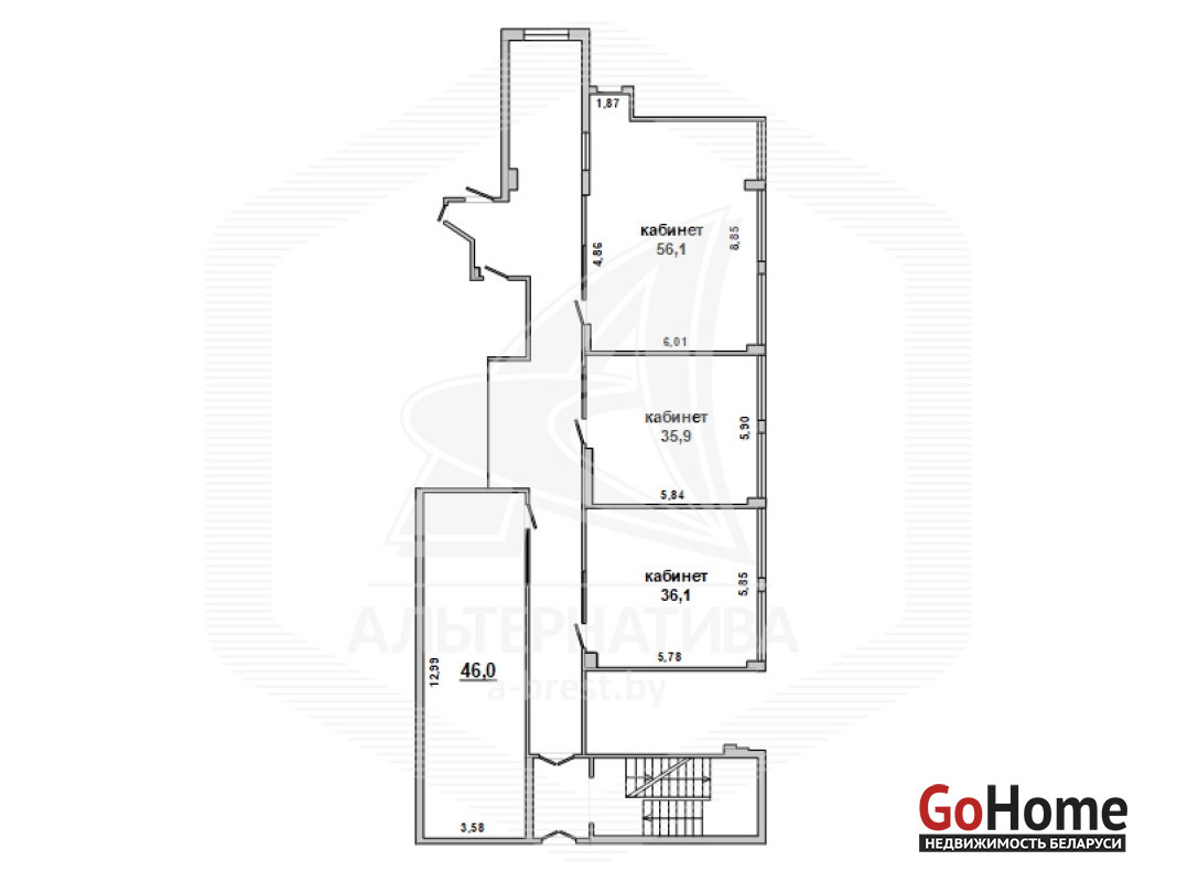 Административное помещение в аренду в восточной части города Бреста общей площадью 187,7 кв.м. Изолированное помещение расположено на 2 (втором) этаже административно - торгового здания. Состоит из 4 (четырех) кабинетов разной площади (36,1 + 35,9 + 56,1 + 46 кв.м). 2 (два) отдельных санузла, подсобное помещение. Оборудована пожарная сигнализация, установлены кондиционеры. Рассматриваются все варианты. Лот - 250013A