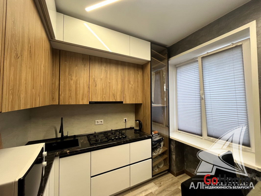 2-комнатная квартира, г. Брест, пр-т Машерова, 1960 г.п., 1 / 5 кирпич, 43,8 / 43,8 / 27,9 / 6,2, санузел совмещенный, стеклопакеты, входная дверь металлическая, полы - ламинат, в санузле современная плитка, заменена сантехника, заменены сантехнические трубы, проведена новая электропроводка. Хороший ремонт. Кухонный гарнитур, вся бытовая техника. Корпусная и мягкая мебель. Лот - 250594