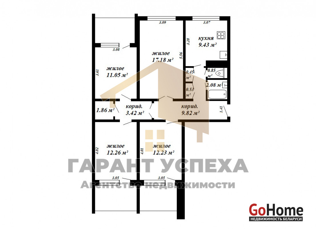 ЧУП «Гарант успеха», УНП 290472700, лицензия №02240/137 от 20.10.2006 г., договор на оказание риэлтерских услуг №152/1 от 18.03.2025 г.