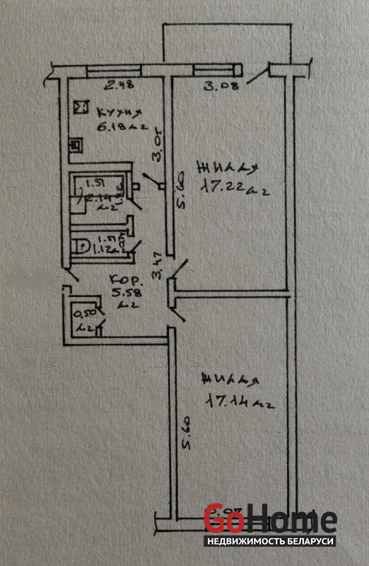 Квартира полностью готова к проживанию. Комнаты изолированные площадью 17,22 и 17,14 м2. В 2020 году произведён капремонт дома. Балкон застеклён и отделан. Окна ПВХ и деревянные. Входная металлическая дверь. На полу паркет, в санузлах плитка. Установлены приборы учёта воды, газа и электричества, интернет, телефон, домофон, подвальное помещение. Удобное расположение: рядом школа и детский сад – отличный выбор для семей с детьми.