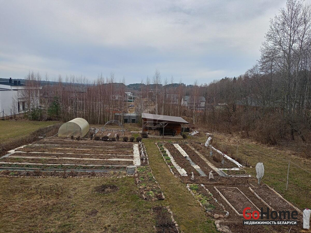 Участок в частной собственности, 14,93 сотки, правильной формы, ровный. На участке разбиты многочисленные аккуратные грядки с сельхоз-культурами, две теплицы, а также вместительный сарай для хозинвентаря с террасой под навесом, где находится место для дров и зона отдыха.
