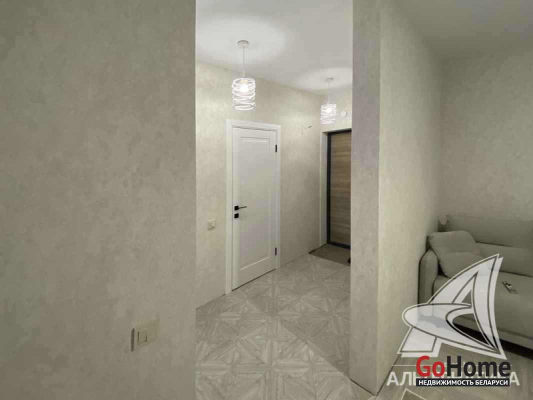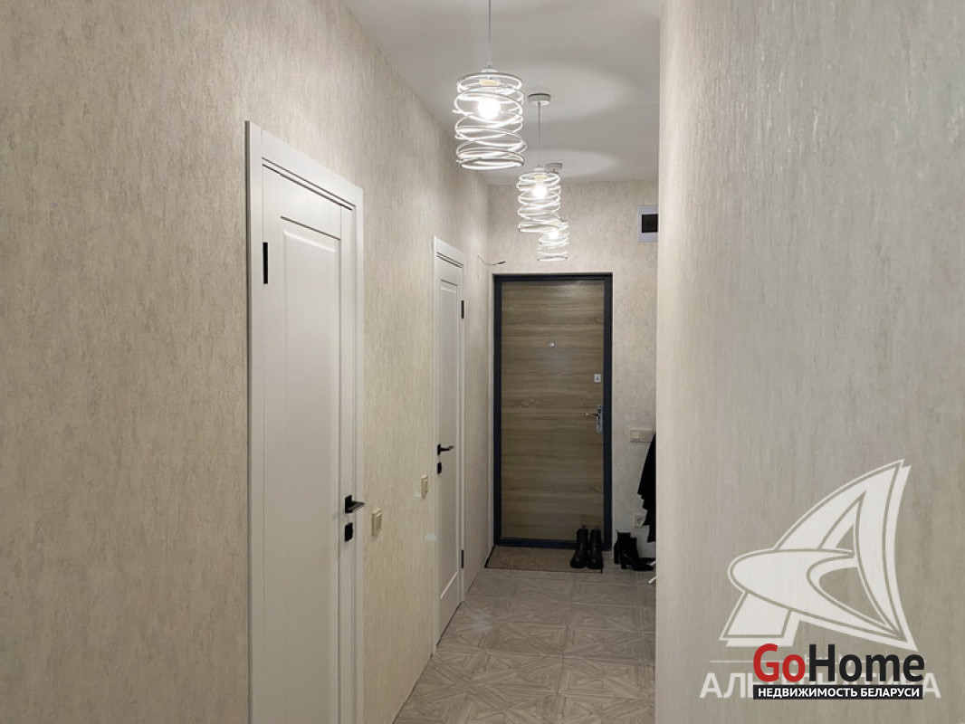 2-комнатная квартира, г. Брест, пр-т Республики, 2022 г.п., 2 / 5 блок, 47,0 / 43,9 / 32,0 / - , санузел совмещенный, один балкон, одна лоджия, стеклопакеты, окна во французском стиле (в кухне), панорамные окна (на лоджии), входная дверь металлическая, одноуровневые потолки (2,71 м), полы - ламинат и плитка (в коридоре, в кухне, на балконе), есть подогрев пола (на лоджии), стены оклеены обоями, в санузле современная плитка (керамогранит), инсталляция (Tece), душевая кабина, видеодомофон. В квартире остается все. Квартира с индивидуальными дизайнерскими решениями. Во дворе игровая детская площадка, парковка для автомобилей. Концепция "двор без машин". Лот - 250635