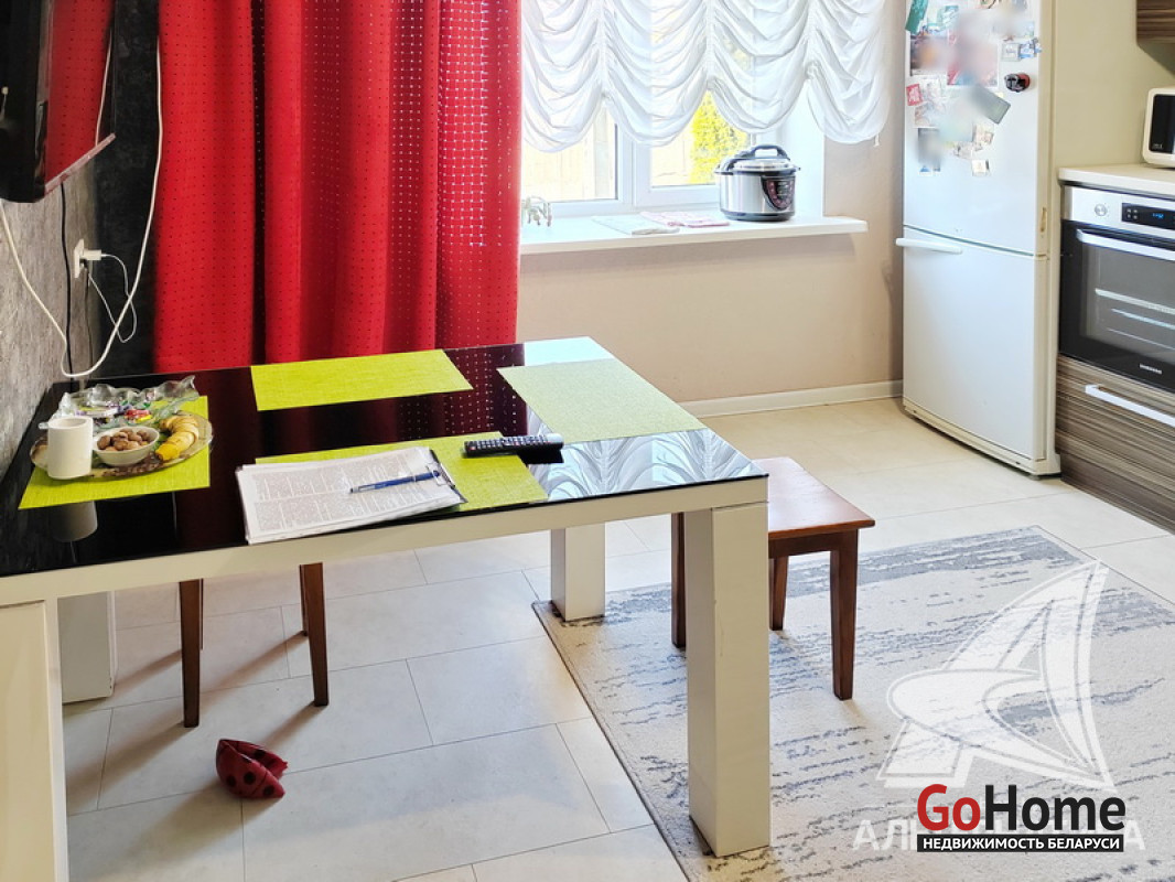 Коммуникации: отопление - газовый котел, газ - централизованный (в доме), водоснабжение - централизованный водопровод, скважина и гидрофор, электричество - централизованное, канализация - автономная.