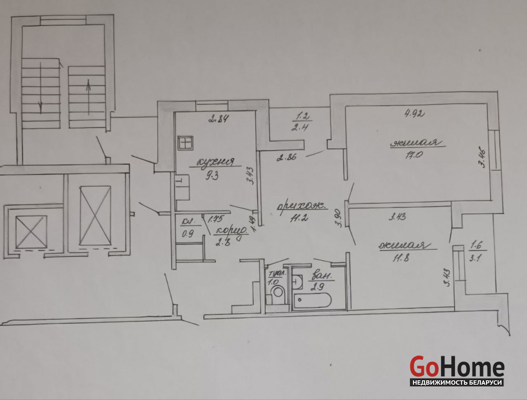 3-комнатная, 62.1/39.4/- м2, Этаж 5 из 5