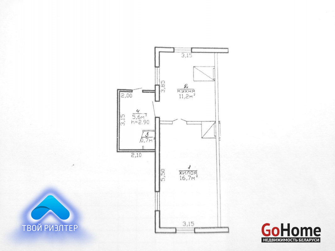 - стандартная планировка квартиры с одной жилой комнатой и кухней, общей площадью 27,9 кв.м.;