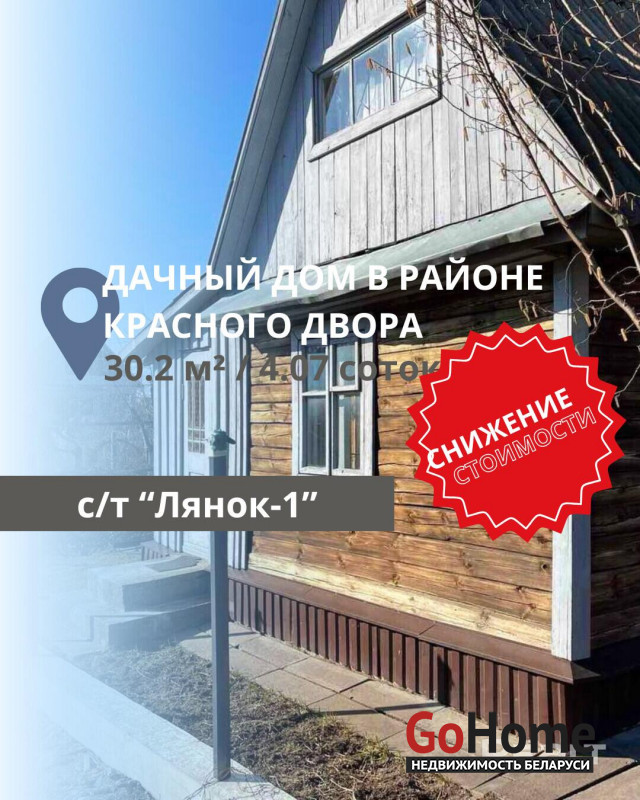 Продается дача в районе Красного двора, практически в черте города Бреста, на территории СТ «Лянок-1», недалеко от зоны отдыха на озерах «Красный двор». Общая площадь дачи составляет 30.2 м2, жилая площадь — 22.9 м2. Участок площадью 4.07 соток ухожен и обустроен: здесь растет газон, многолетние туи и кусты, формирующие живую изгородь, а также есть место под огород и плодовыми деревьями. Садовый домик из бруса обеспечивает прохладу в летние дни и включает в себя веранду и жилую мансарду. Отопление осуществляется печным способом. Все дорожки на участке выложены плиткой, что добавляет удобства. Из коммуникаций доступны централизованное электричество, газ по улице и водоснабжение через скважину. Это идеальное место для летнего отдыха: здесь можно купаться на озерах и встречаться с друзьями на шашлыках.