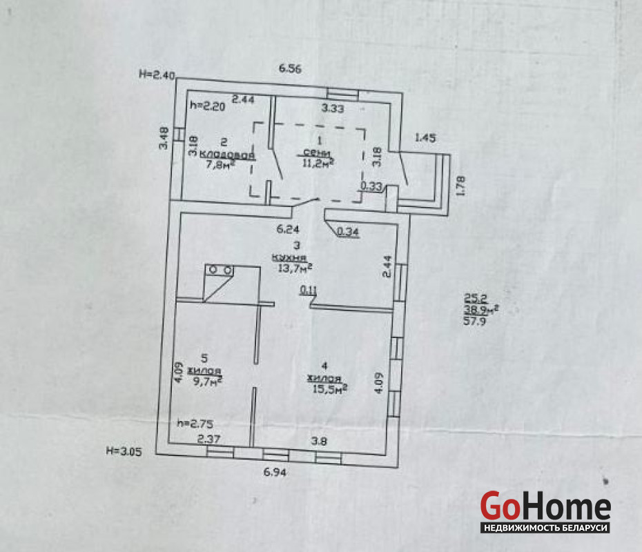 Общая площадь дома составляет 57,9 м². Он включает две просторные комнаты, кухню, прихожую и хозяйственное помещение, а также сухой погреб для хранения продуктов. Участок большой и ухоженный, на нем расположены хозяйственные постройки, а земля ежегодно обрабатывается и имеет насаждения.