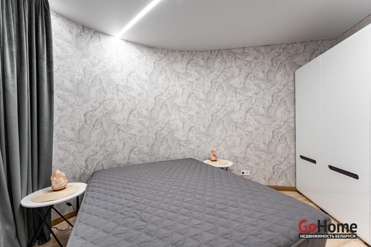 Площадь – 86.9 кв.м. Просторная спальня, кухня –гостиная, раздельный санузел, большой коридор с выделенной гардеробной, застекленная лоджия.