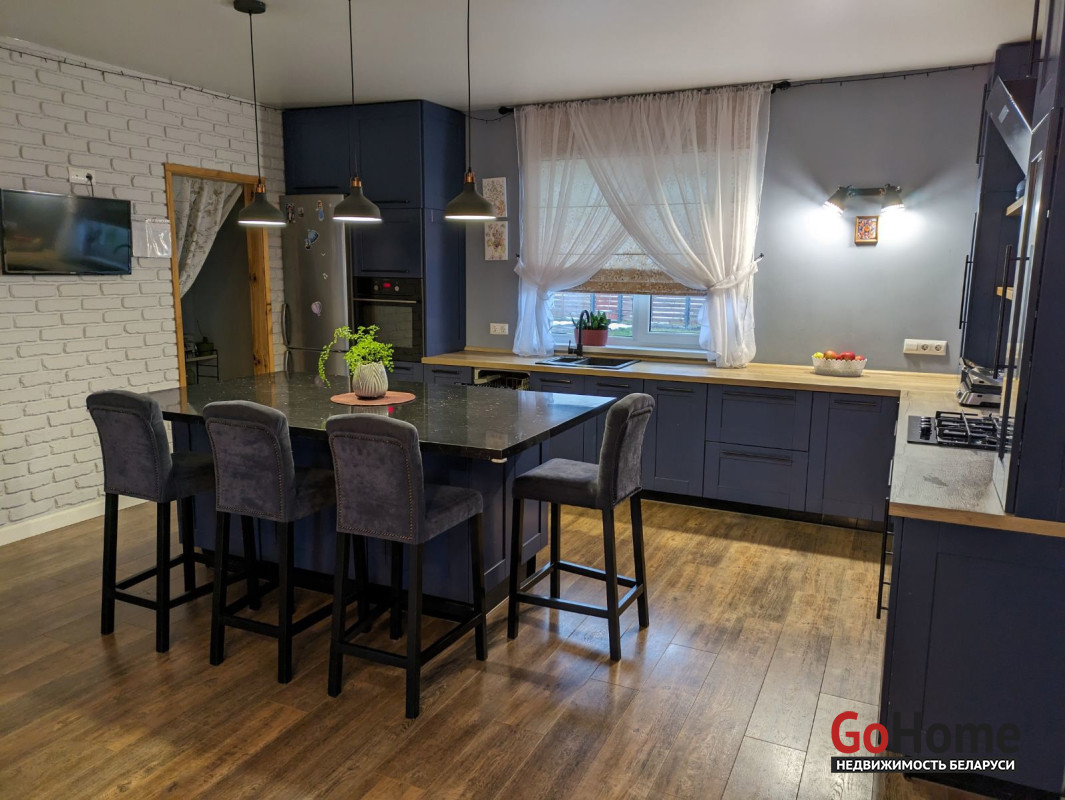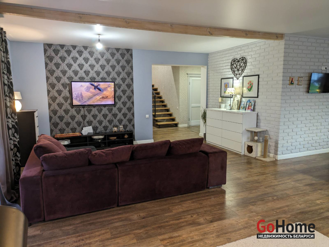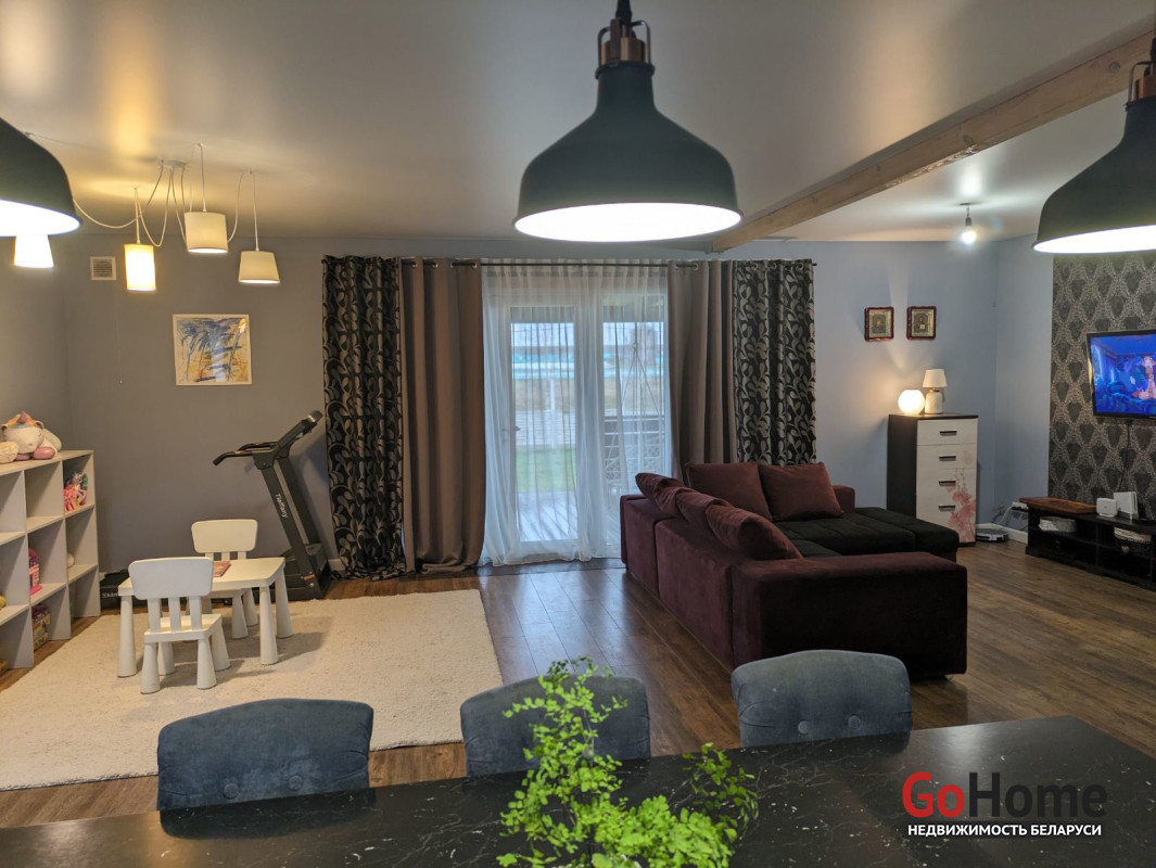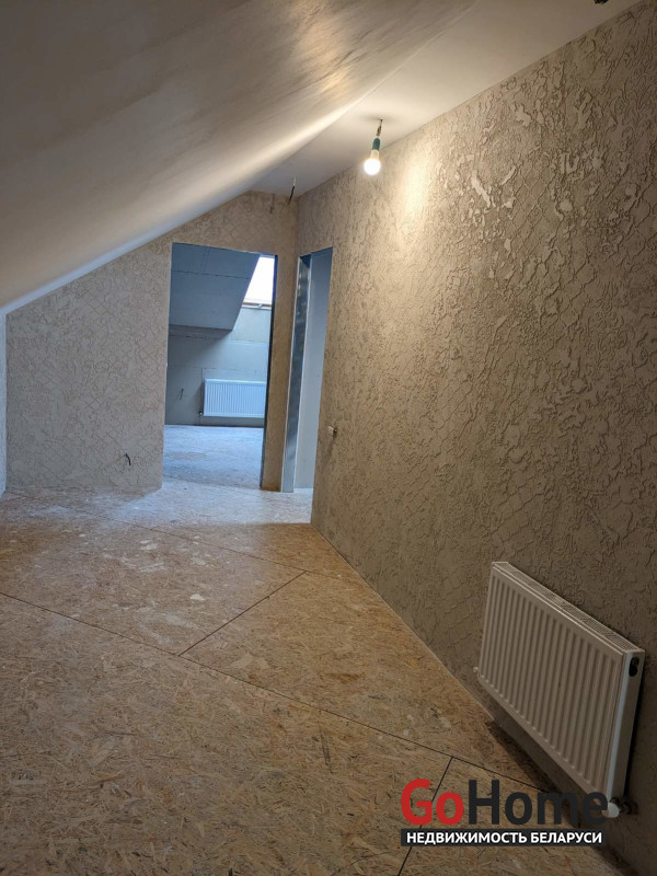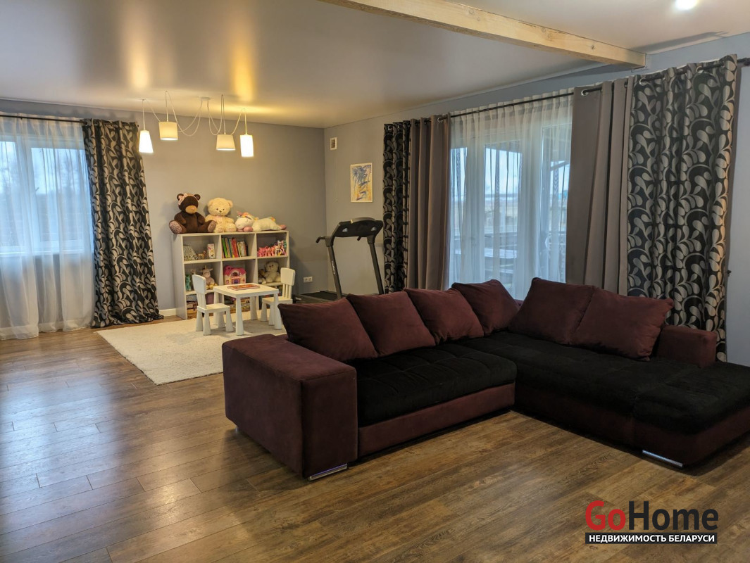 Продается большой современный дом мансардного типа в д. Оснежицы. Год постройки - 2018. Площадь участка 0,2095 га, с ограждением по всему периметру. Дом пеноблочный, утеплен, оштукатурен. Общая площадь дома 178 м², жилая 109,3 м², гостиная-столовая 57,1 м², 4 жилые комнаты, гараж 32,2 м². Крыша - металлочерепица, окна ПВХ. Входная дверь – металлическая + ПВХ, межкомнатные двери деревянные, лестница - массив. Пол – ламинат и плитка, устроены теплые полы на 1 этаже. На стенах обои и декоративная штукатурка, потолок натяжной. В санузле уложена плитка. Имеется благоустроенная терраса с выходом из гостиной. Вода – скважина (возможно подключение к центральному водоснабжению), канализация местная. Отопление - газовый котёл. Частично остаётся мебель. На участке есть декоративные зелёные насаждения, плодовый сад, качели. Хороший асфальтированный подъезд к дому.