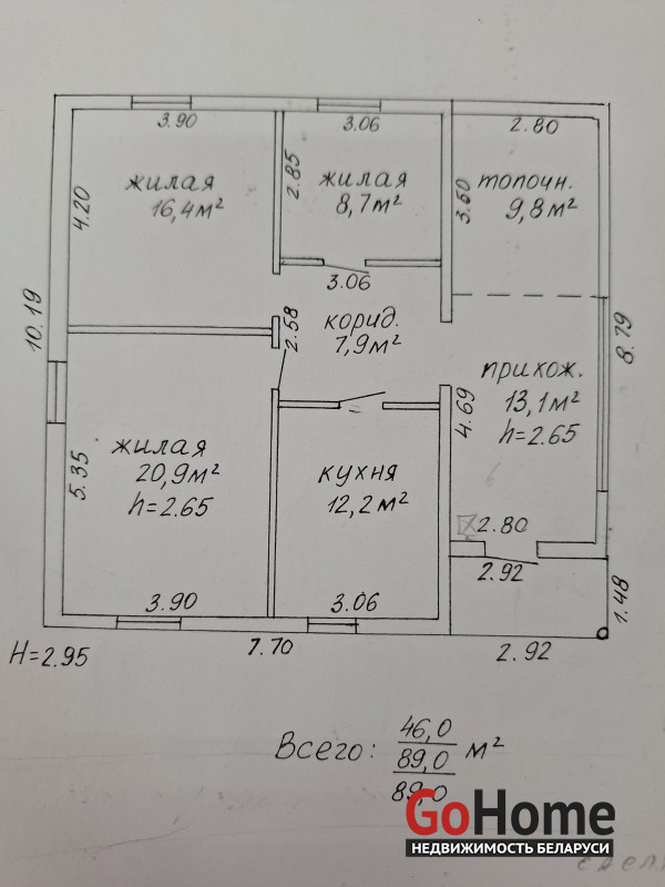 Дом 1995 года постройки. 3 комнаты площадью 20.9 м²; 16.4 м²; 8.7 м²; кухня 12.2 м². Высокие потолки 2,65. Отопление газовое, 2-х контурный котёл. Водоснабжение централизованное. Электроснабжение есть.
